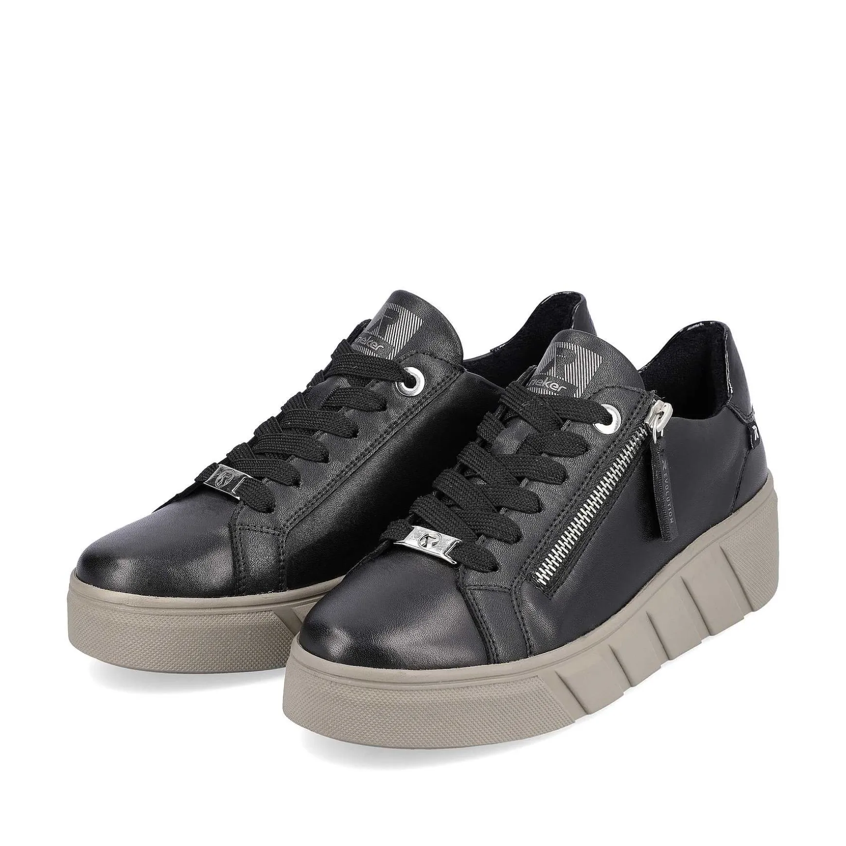 Black Sport & Style Rieker Sneaker Low For Women Made Of High-Quality Smooth Leather. The Shoe Is Put On Easily And Quickly Thanks To The Zipper. The Ultralight Light Pu Sole Has A Cushioning Effect. In Addition, The Removable, Soft Insole Provides Maximum Cushioning For Every Step.