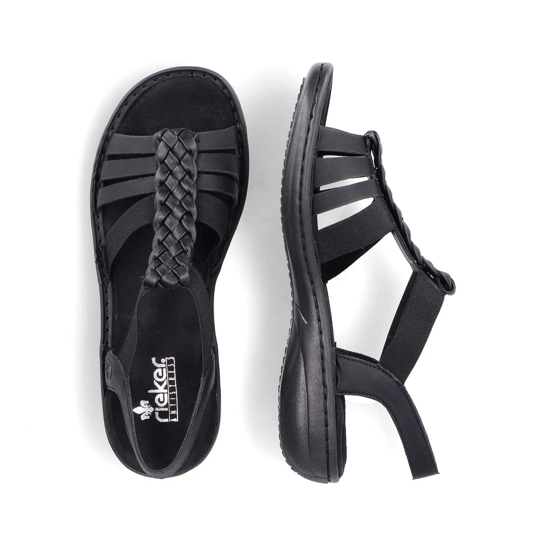 We Love Black! These Asphalt Black Rieker Strappy Sandals For Women Guarantee A Heavenly Feel. The Elastic Insert Makes It Particularly Easy To Put On And Take Off. The Middle Strap With A Braided Look Perfectly Rounds Off The Modern Design. The Light And Shock-Absorbing Sole Offers A Lasting Feeling Of Well-Being – Even On Long Days. Thanks To The Narrow Fit E 1/2, The Shoe Fits Perfectly. Enjoy The Summer!