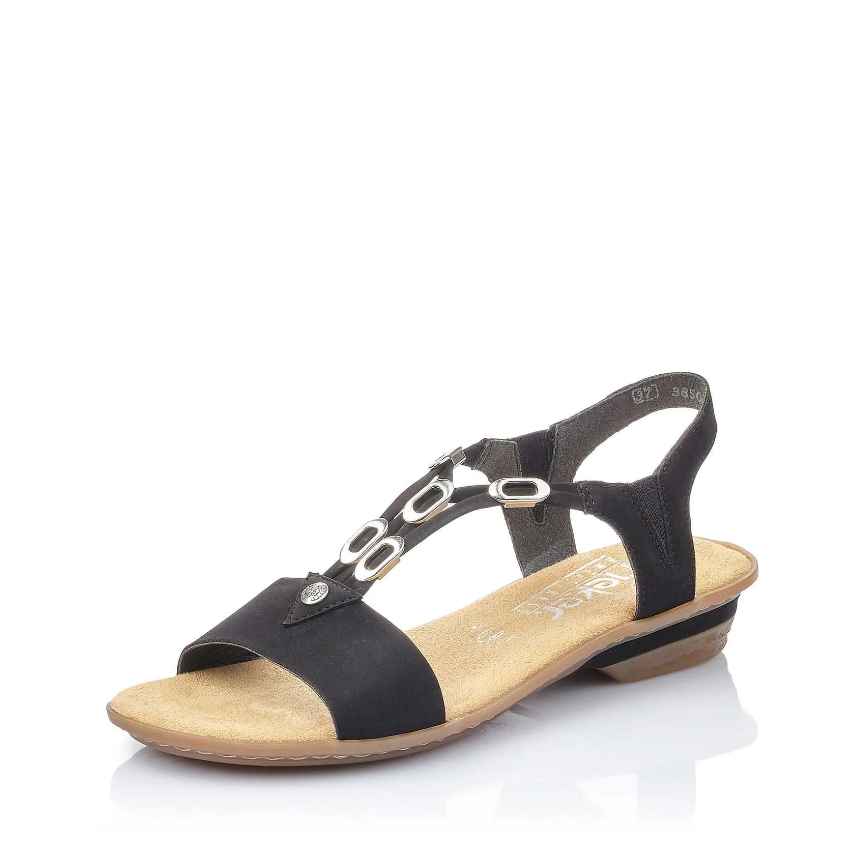 Wow Factor! These Deep Black Rieker Strappy Sandals Are A Comfortable Companion. The Elastic Insert Makes Putting On And Taking Off Easy And Comfortable. The Middle Strap With Shiny Elements Highlights The Design In A Fashionable Way. The Shoe Has A Non-Slip Sole That Provides Good Grip For A Confident Step. Fashionable Well-Being In The Style Of Rieker!