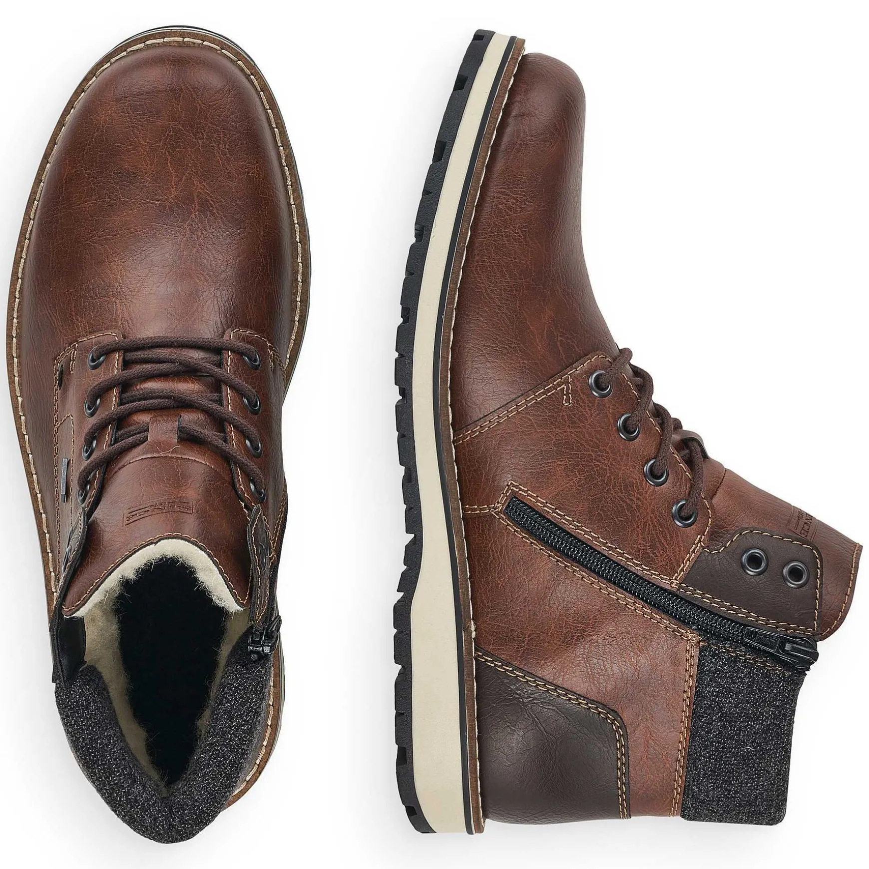 No More Freezing Feet! These Maroon Lace-Up Boots From Rieker Guarantee A Heavenly Feel. In Addition To The Lacing, The Model Also Has A Zipper, Ensuring Ideal Support. Its Robust Profile Sole Ensures Good Grip And The Extra Soft Insole Ensures Extra Comfort. Thanks To The Comfort Width G 1/2, There Is Enough Space In The Forefoot Area. The Cozy And Very Warm Virgin Wool Lining And The Riekertex Technology Keep Your Feet Warm And Dry. So Let’S Go!