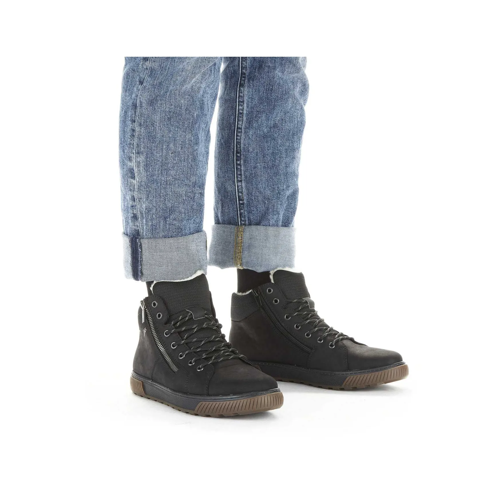 Fashion Meets Function. You Won’T Want To Take Off These Asphalt Black Rieker Lace-Up Shoes For Men Made From Suede. In Addition To The Lacing, The Model Also Has A Zipper, Ensuring Ideal Support. The Shoe Has A Robust Profile Sole That Impresses With Good Grip For A Safe Step. Another Plus Is The Extra Soft Insole. Thanks To The Comfort Width G 1/2, The Feet Have More Space In The Shoe. The Cozy And Very Warm Virgin Wool Lining Is Guaranteed To Keep Your Feet Warm All Day Long And Thanks To The Riekertex Technology They Also Stay Dry! Functional And Fashionable To Defy The Cold Weather!