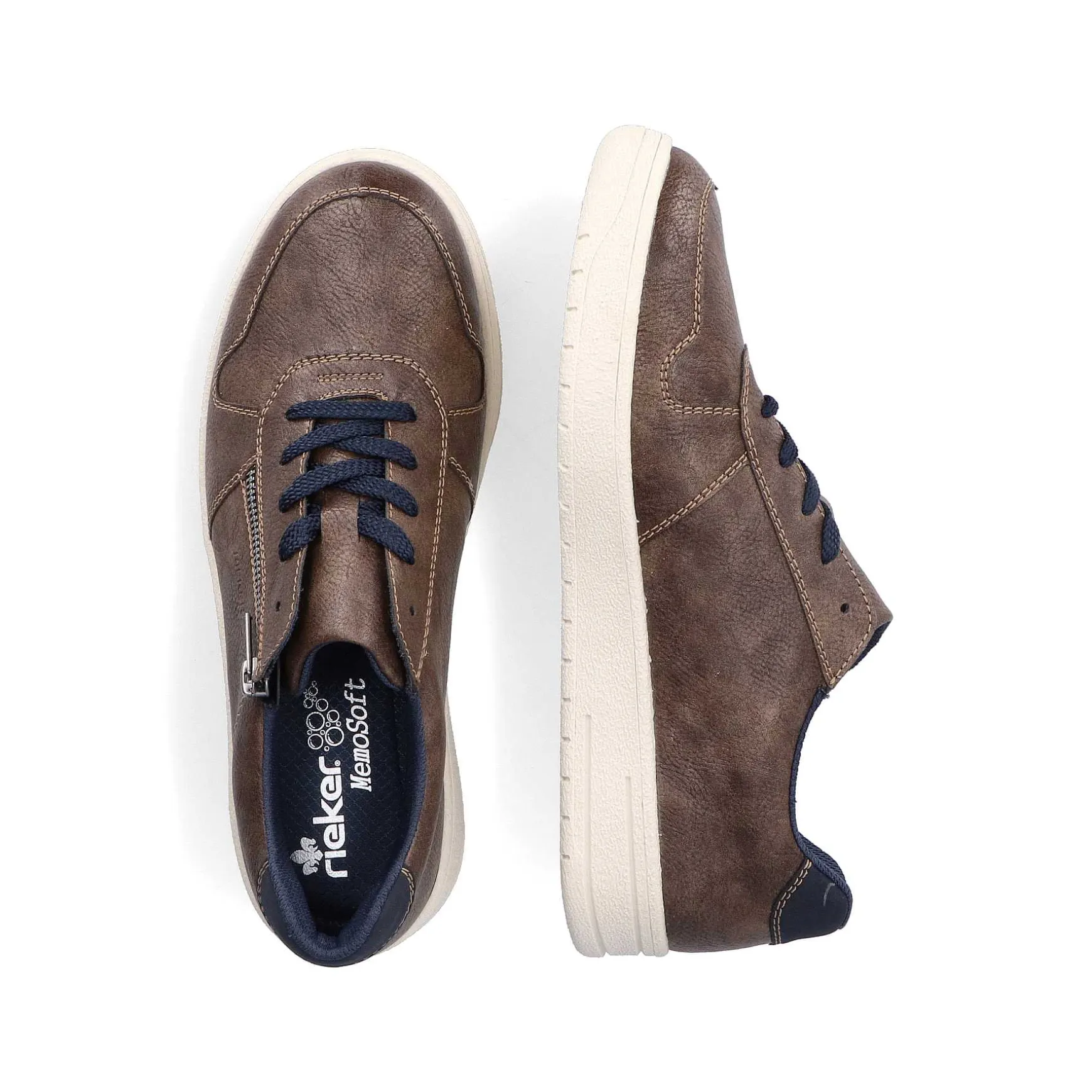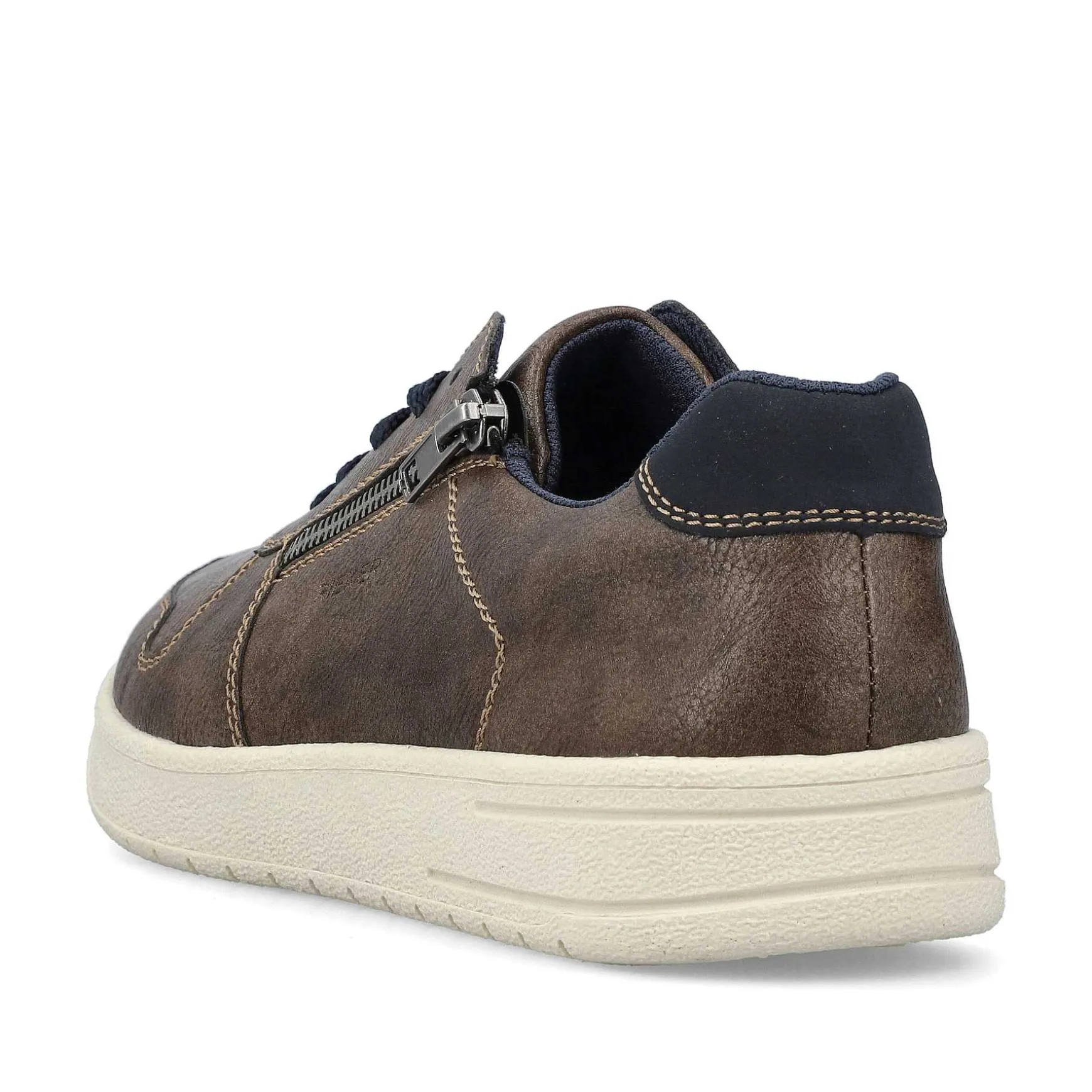 These Classy Brown Sport & Style Rieker Sneakers Low For Men Are Made Of High-Quality Faux Leather And Equipped With The Top Combination Of Zipper And Lacing. The Tr Sole With Ultra-Light, Super Soft Eva Inlet Offers A Next-Level Walking Experience. Meanwhile, The Padded, Removable Memocup Insole Ensures A Rebound Effect – For Dynamic Rolling With More Energy.