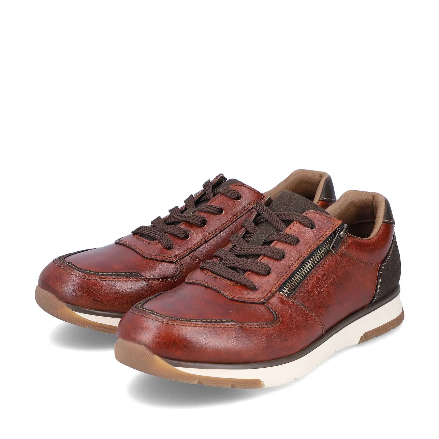 Style Or Comfort? Why Or? These Red-Brown Rieker Sneakers Low For Men Made Of Smooth Leather Dots With A Classic And Sporty Design. The Lacing Is Complemented By A Zipper, Thus Guaranteeing The Best Possible Hold And A Perfect Fit. The Robust Profile Sole Impresses Across The Board. The Soft And Particularly Breathable Leather Insole Ensures Maximum Comfort. The Comfort Width G Gives The Toes More Freedom Of Movement. Pure Carrying Luxury!