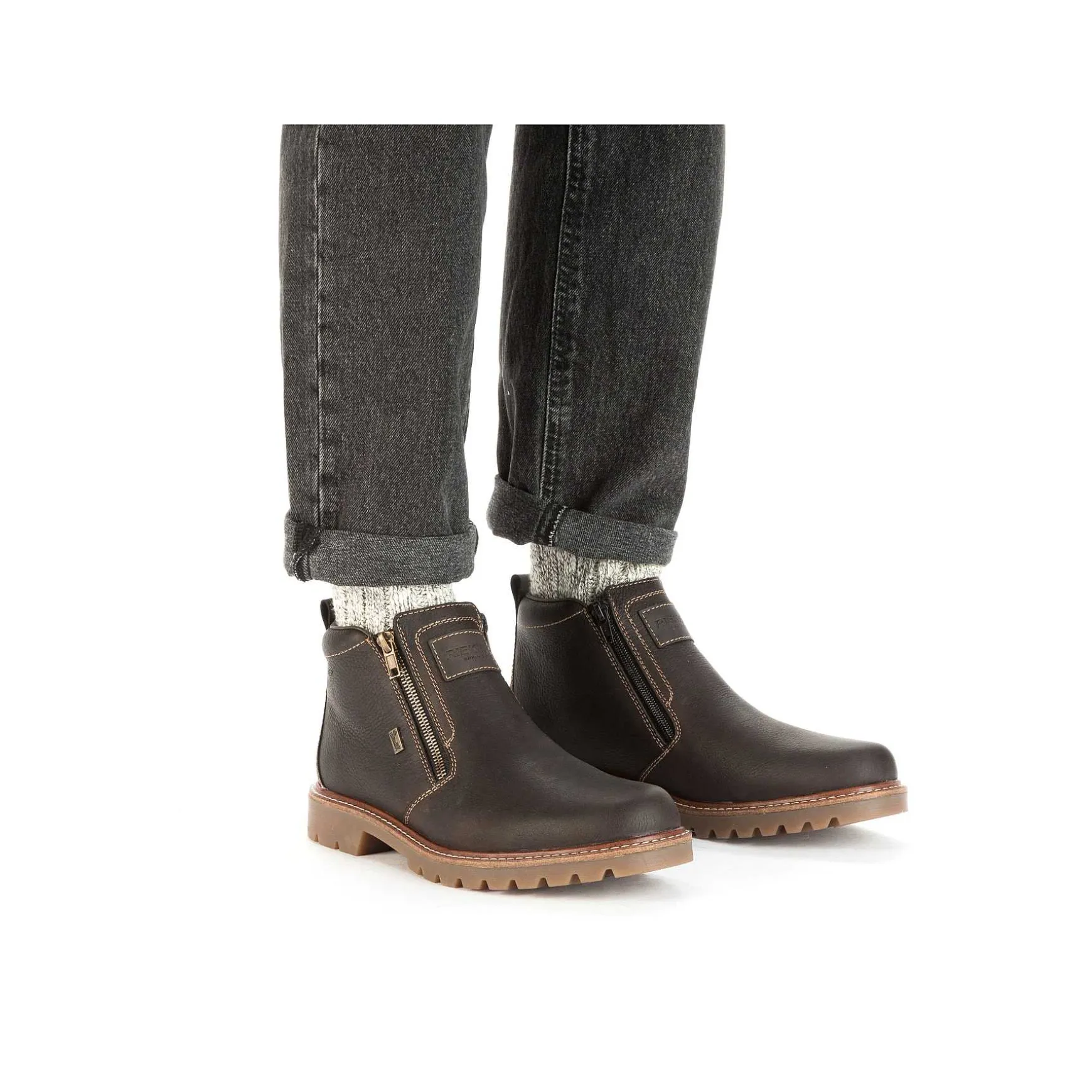 Dream Team – Style And Comfort! These Black-Brown Short Boots Made Of Smooth Leather From Rieker Impress With Functional Materials That Take The Wind Out Of The Wet Weather. The Side Zipper Allows You To Put It On And Take It Off Quickly. The Robust Profile Sole Provides The Best Possible Grip At Every Turn. The Cover Sole Is Also Extra Soft. Thanks To The Comfort Width G 1/2, There Is Enough Space In The Forefoot Area. The Shoe Is Equipped With The Water-Repellent Riekertex Membrane, Additional Support Is Provided By The Fiber Grip Elements In The Outsole. Cozy And Very Warm Virgin Wool Ensures Warm Feet At Low Temperatures. All In One – Great!