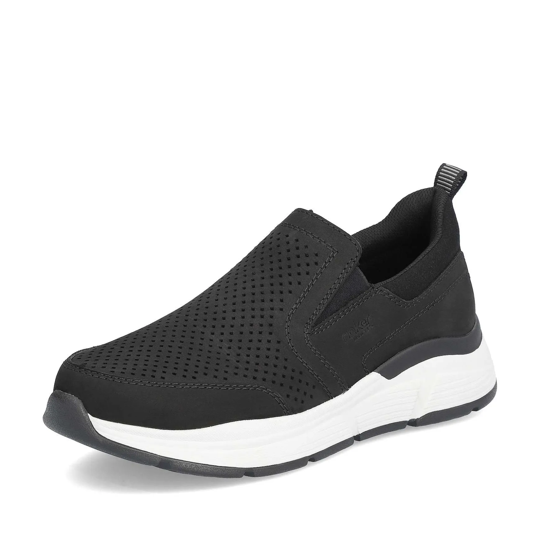 We Love Black! These Casual Deep Black Rieker Slippers For Men Made Of Suede Leather Are Cozy Companions On All Your Trips. In Addition, The Shoe Fits Like A Glove Thanks To The Elastic Insert. The Openwork Style Gives The Shoe That Certain Something. The Ultra Light And Flexible Sole Ensures A Comfortable Fit. The Slippers Have A Padded And Removable Insole That Is Like A Vacation For Your Feet! The Model Ensures Additional Freedom Of Movement For The Foot Because It Is Cut In An Extra Wide H. Fashionable Well-Being In The Style Of Rieker!