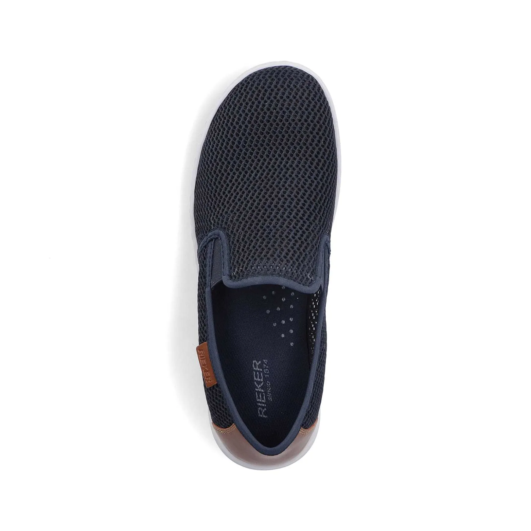 More Space For Your Feet! Get Out And About In Maximum Comfort And Ultimate Style With These Everyday Navy Blue Rieker Slippers For Men. The Elastic Insert Also Ensures That The Shoe Stays In Place At All Times. The Ultra Light And Flexible Sole Ensures A Comfortable Walking Experience Even When Worn For Long Periods Of Time. The Shoe Has A Removable Insole, Which Is An Impressive Comfort Feature. The Model Ensures Additional Freedom Of Movement For The Foot Because It Is Cut In An Extra Wide H. Slip In And Feel Good!