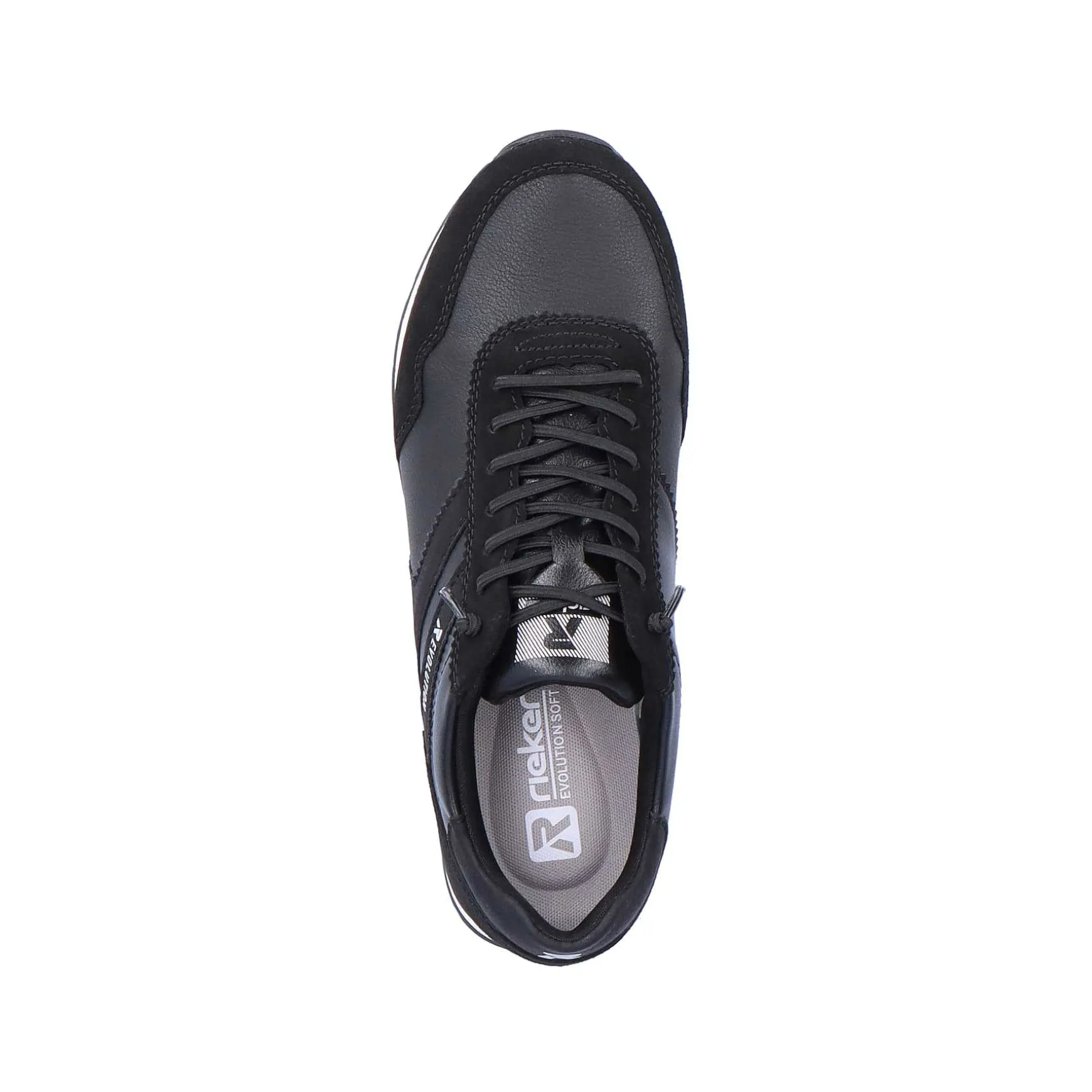This Black Sport & Style Rieker Sneaker Low For Men Impresses With High-Quality Smooth Leather. The White Lighttr Sole Provides Grip On A Variety Of Surfaces And The Padded Removable Insole Cushions Every Step. Perfect Fit Thanks To Comfort Width. Includes An Elastic Band For Replacement.