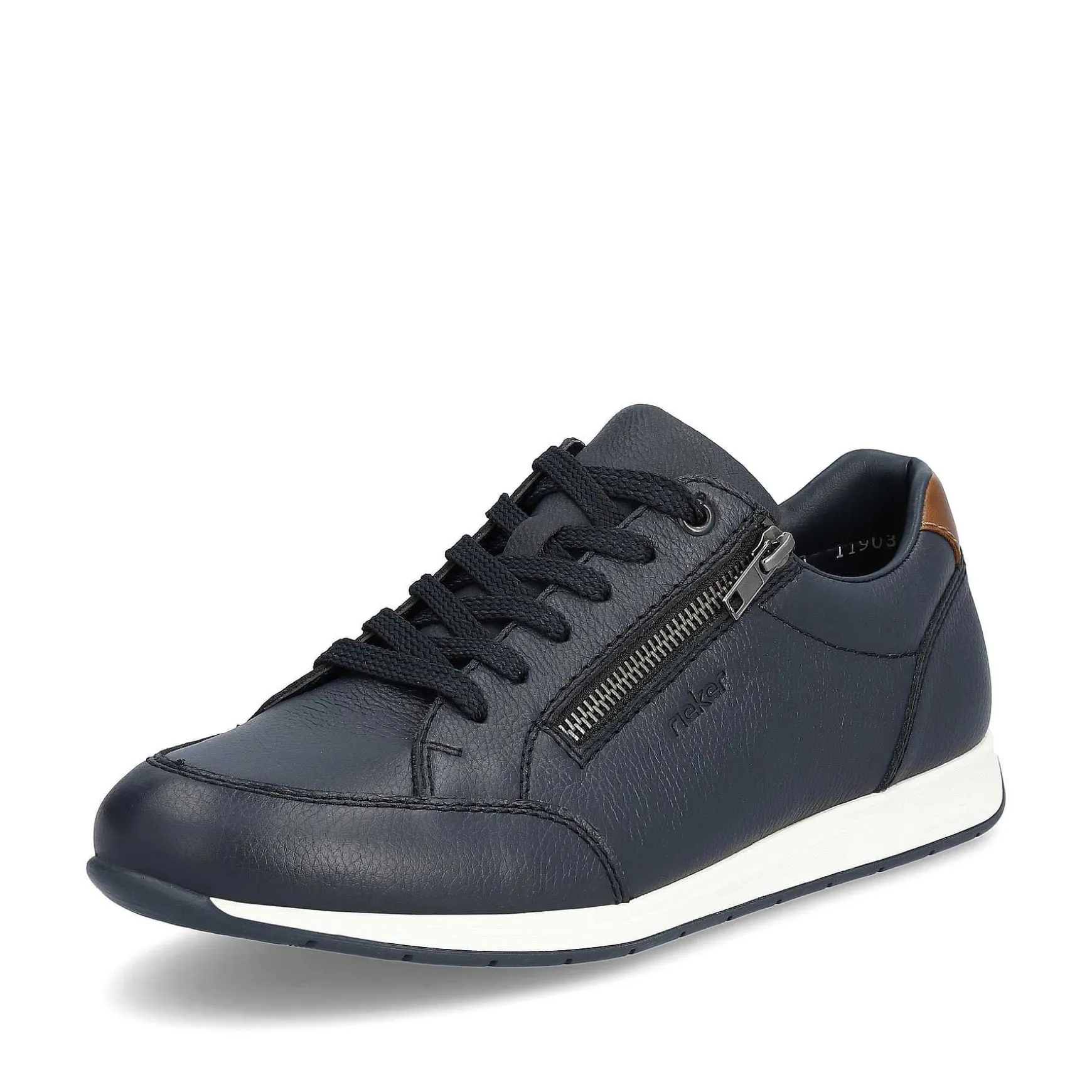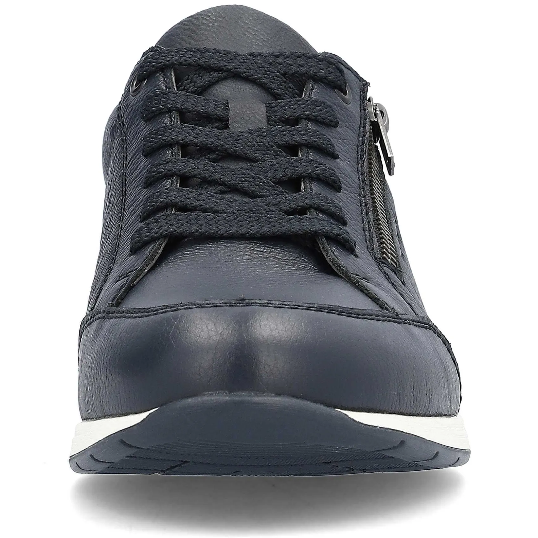 Easy Walking, Easy Living! These Steel Blue Rieker Sneakers Low For Men Made Of Smooth Leather Are One Of Our Exclusive Anniversary Models – Because Rieker Will Celebrate Its 150Th Anniversary In 2024! Despite The Lacing, The Shoe Can Be Easily Closed With A Zipper. With The Shock-Absorbing And Lightweight Sole, Your Feet Will Be Pampered With Every Step And The Extra Soft Insole Is Another Plus. The Shoe Is Cut In A Comfortable Width Of G 1/2 And Ensures Enough Space For The Foot. 100% Favorite Shoe Potential!