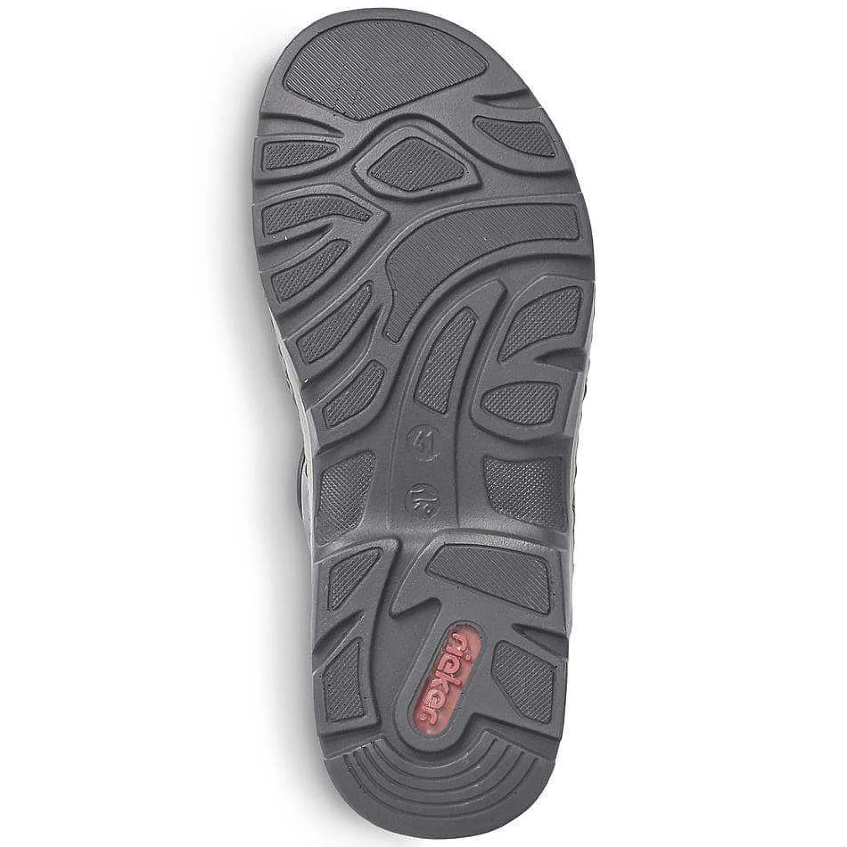 Style Or Comfort? Why Or? These Asphalt Gray Rieker Trekking Sandals For Men Not Only Look Stylish, But Also Ensure A Certain Level Of Comfort In Everyday Life Thanks To Their Quality. Thanks To Crossed Straps And A Velcro Fastener, The Shoe Adapts Individually To The Foot. The Wide Heel Strap Provides Additional Support. The Shock-Absorbing And Lightweight Sole Ensures A Comfortable Walking Experience Even When Worn For Long Periods Of Time And The Insole Is Extra Soft. The Comfort Width G Offers The Toes Enough Freedom Of Movement. All In One – Great!