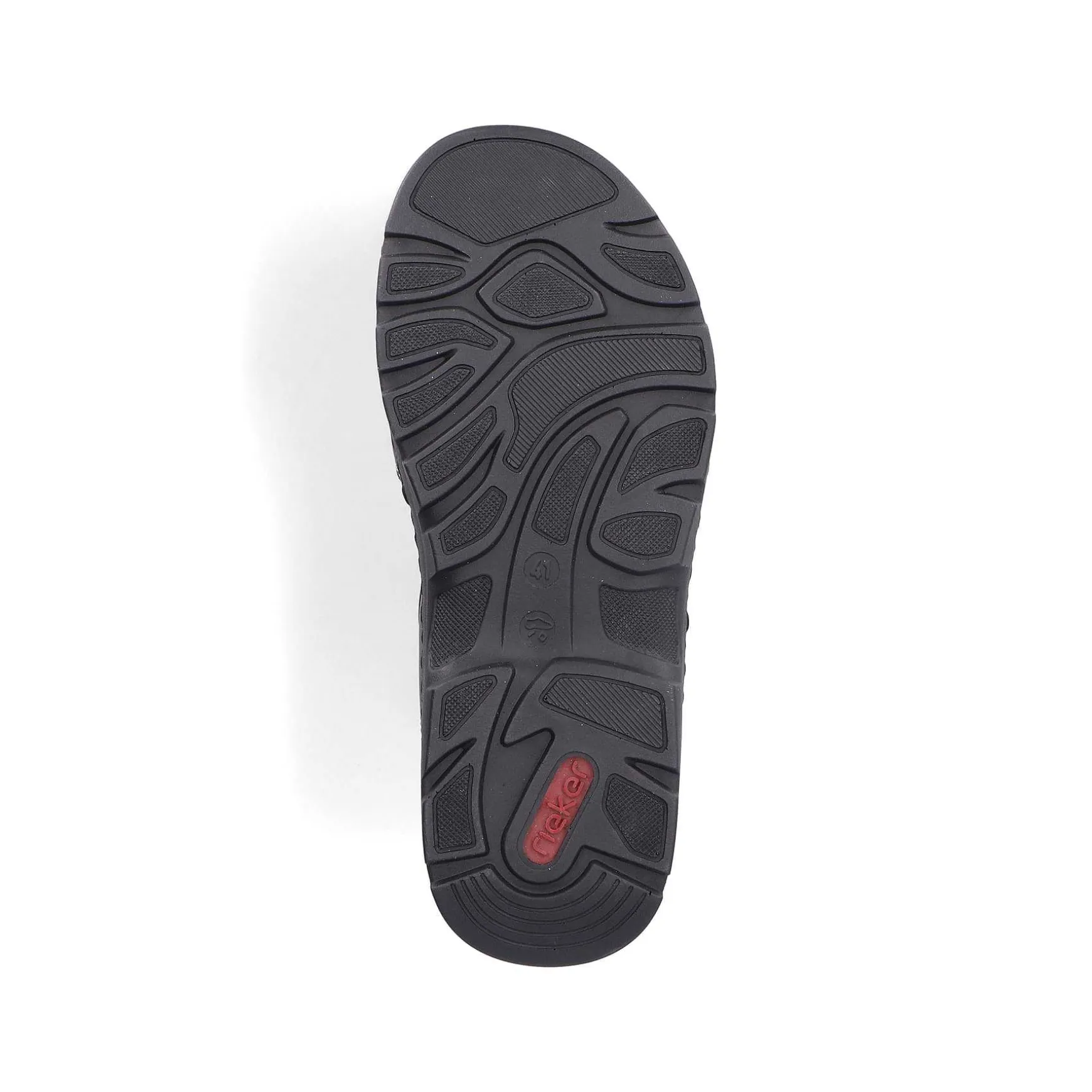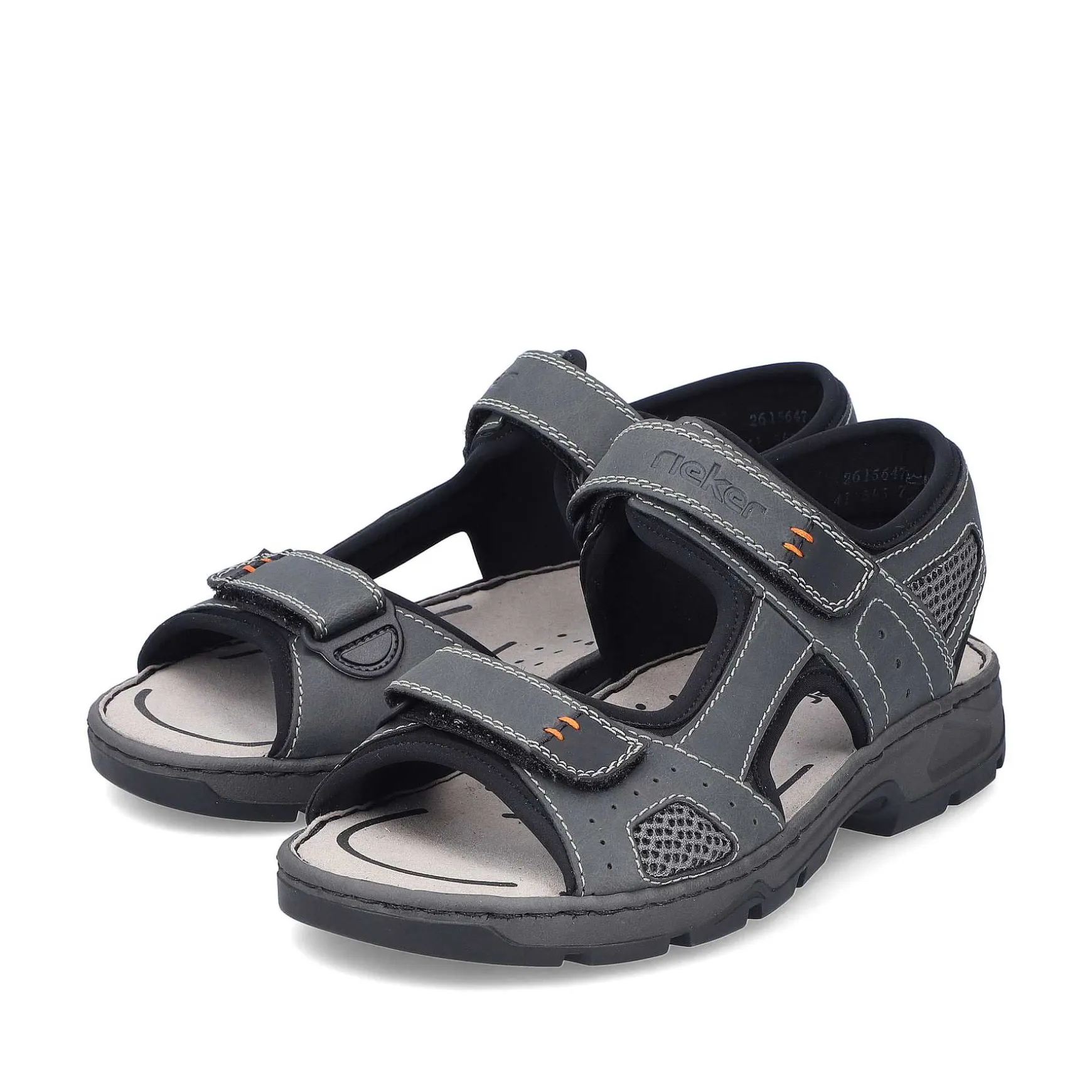 Always One Step Ahead! These Dark Gray Rieker Trekking Sandals For Men Are Perfect For Every Day. Thanks To Straps And A Velcro Fastener, The Shoe Adapts Individually To The Foot. The Wide Heel Strap Provides Additional Support. The Decorative Seams Harmoniously Round Off The Look Of The Shoe. With The Light And Shock-Absorbing Sole, Your Feet Enjoy The Best Walking Comfort With Every Step. In Addition, The Extra Soft Insole Ensures An Extra Portion Of Comfort. Thanks To The Comfort Width G, There Is Enough Space In The Forefoot Area. All In One – Great!