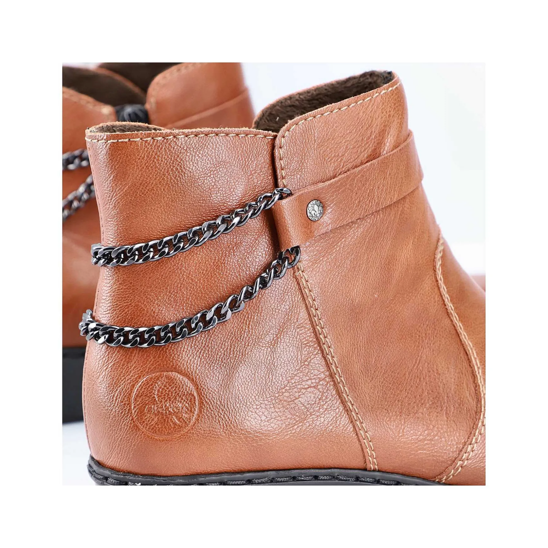 Style Vibes Are On! These Kramell Brown Ankle Boots Bring Everything Together: Comfort, Function And Of Course Style. A Side Zipper Allows For Quick And Comfortable Entry. The Decorative Silver Chain On The Back Gives The Shoe That Certain Something. The Sole With Block Heel Is Both Light And Shock-Absorbing, Offering A Double Feeling Of Comfort With Every Step. Searched, Found!