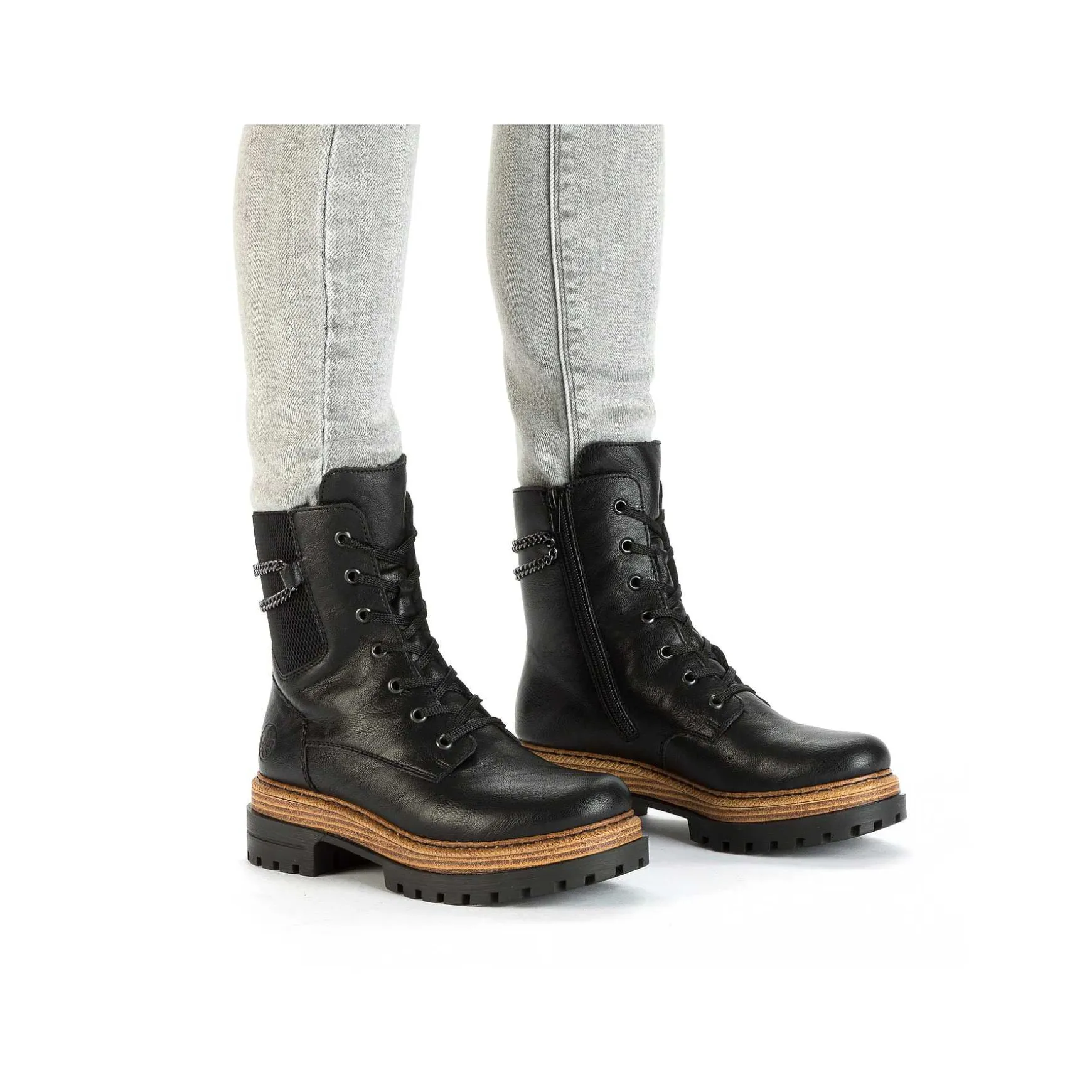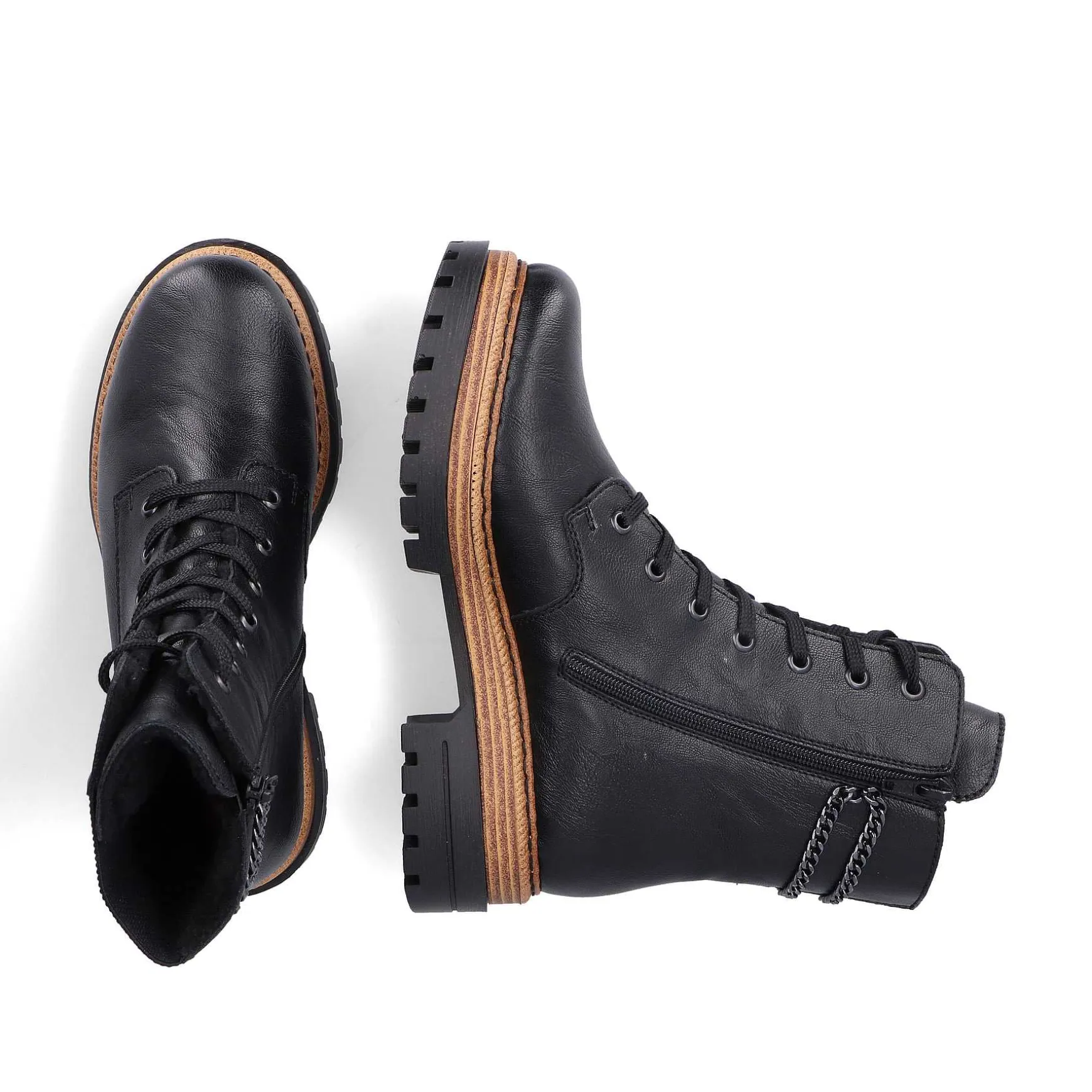 Dream Team – Style And Comfort! These Asphalt Black Biker Boots From Rieker Guarantee A Heavenly Wearing Experience. The Lacing Is Complemented By A Zipper, Thus Guaranteeing The Best Possible Hold And An Ideal Fit. The Decorative Chain On The Shaft Perfectly Rounds Off The Modern Design. The Light And Shock-Absorbing Sole Pampers Your Feet With Every Step. On Top Of That, The Extra Soft Insole Ensures An Extra Dose Of Comfort. For All Ladies With Large Feet, The Biker Boot Is Also Available In Oversizes. Soft Warm Lining Keeps Feet Cozy And Warm All Day Long. Here The Frosty Weather Goes Empty.