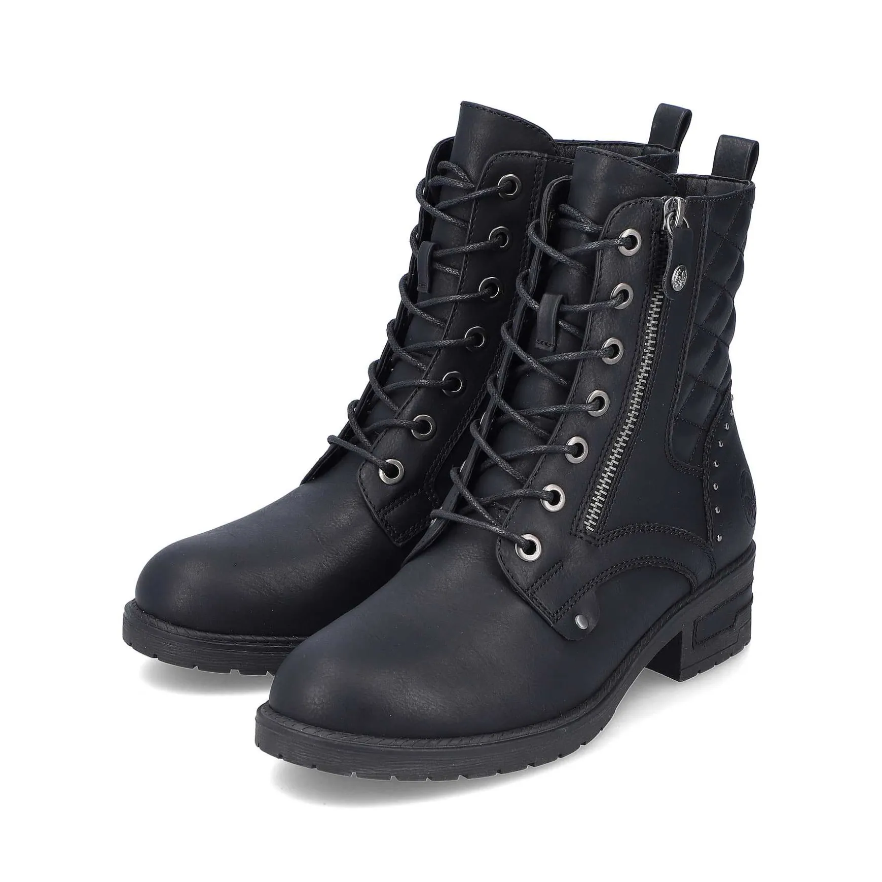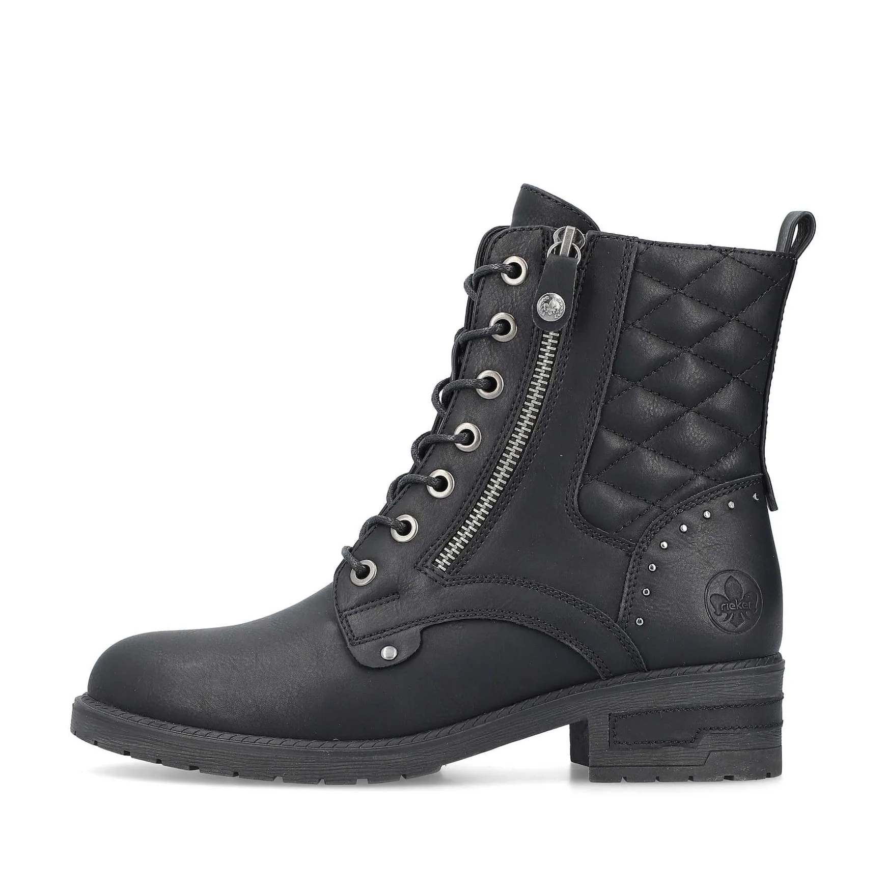 Cold Days, Warm Feet! These Midnight Black Biker Boots From Rieker Guarantee A Heavenly Wearing Experience. A Lacing Complements The Zipper And Ensures Functionality And Comfort. The Robust Profile Sole Ensures Good Grip. Soft Warm Lining Makes This Biker Boot The Ideal Companion – In Any Weather. So Let’S Go!