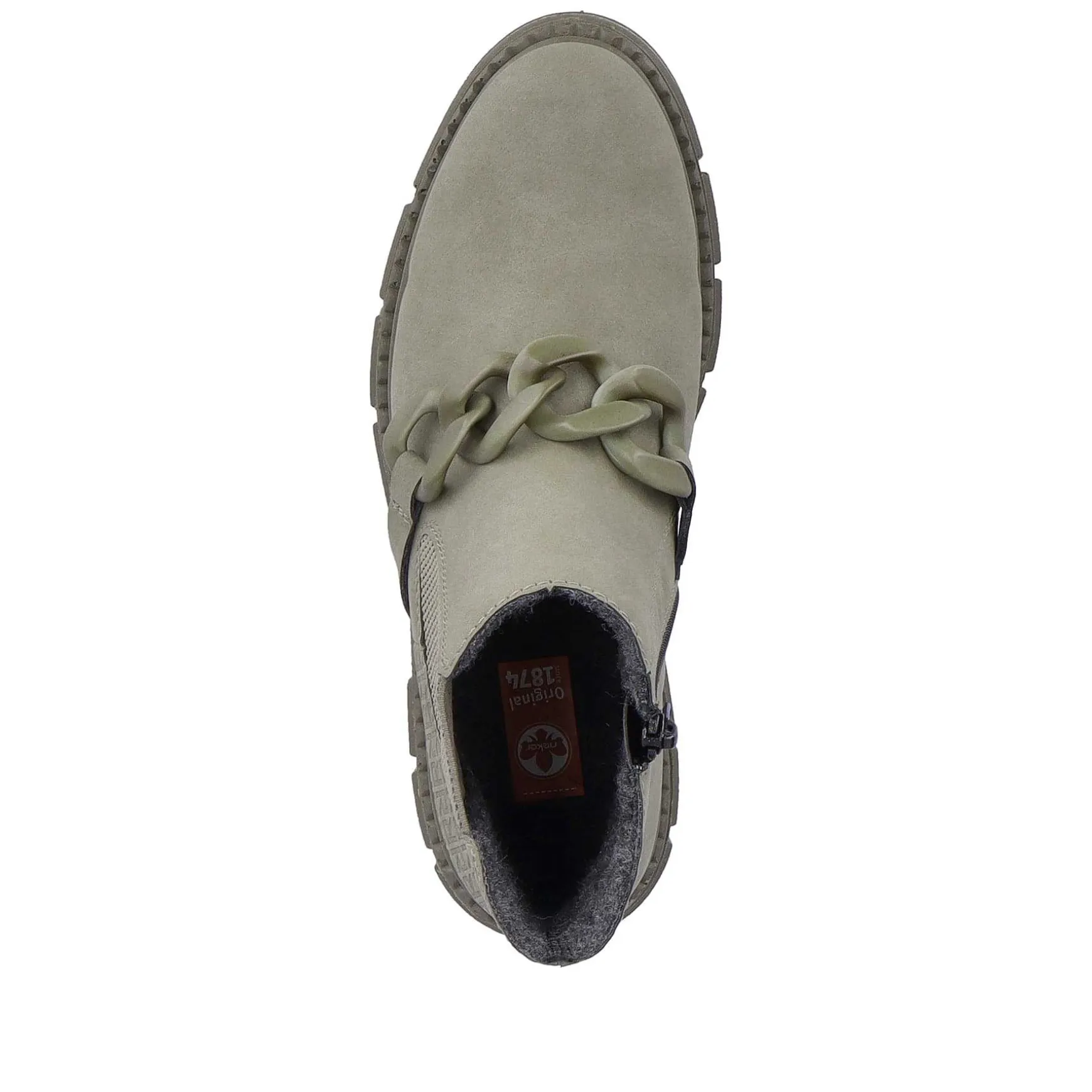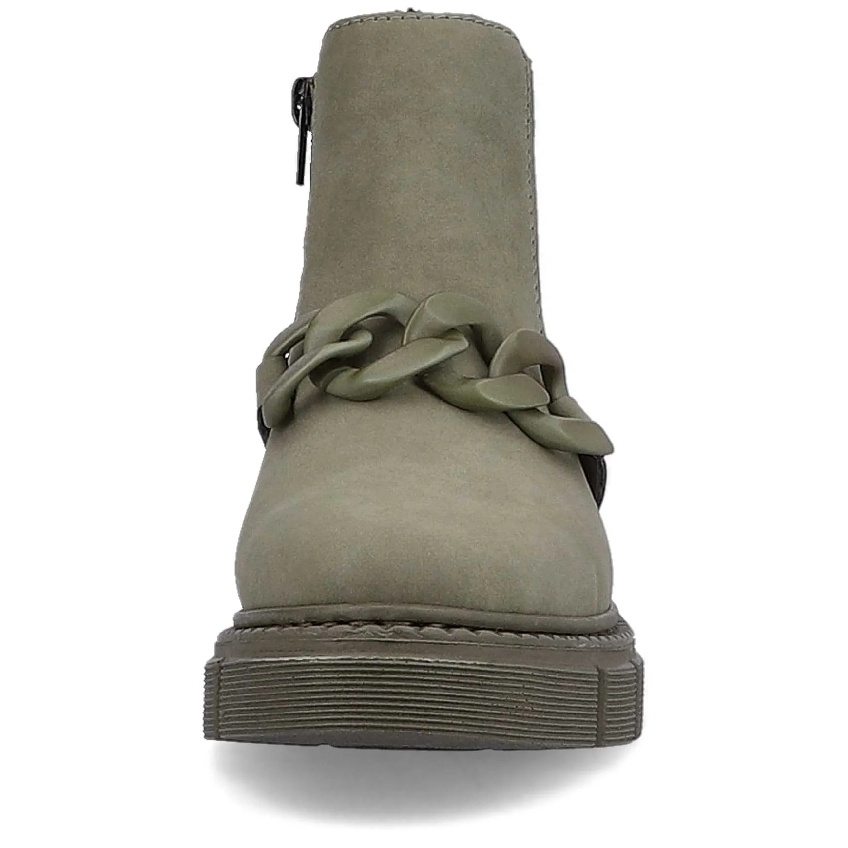 All In One Shoe! These Casual Army Green Chelsea Boots From Rieker Are Cozy Companions On All Your Trips. The Zipper Together With The Elastic Insert Typical Of Chelsea Boots Makes It Easy To Put On And Take Off. The Decorative Chain On The Top Skilfully Refreshes The Design. The Shock-Absorbing And Lightweight Sole Offers The Best Walking Comfort And The Cover Sole Is Extra Soft. For Those Who Prefer Something A Little Bigger: The Chelsea Boots Are Available Up To Size 43. All In One – Great!