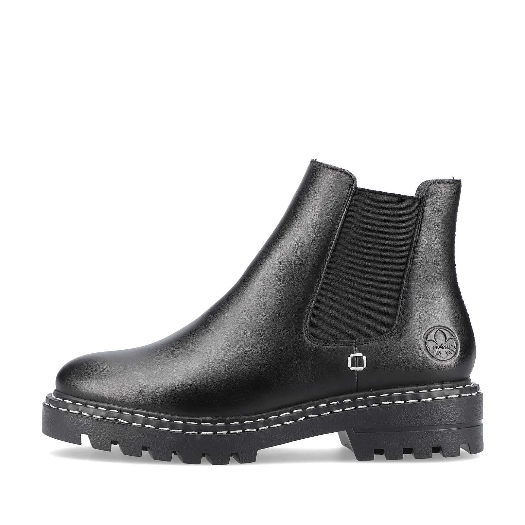 From Chelsea With Love… This Chic, Black Chelsea Boot From Rieker Made Of Smooth Leather Is Chic And Sporty At The Same Time Thanks To Its Look With A Profiled Sole. Velor Lining Keeps Your Feet Nice And Warm. The Soft Insole Ensures A Great Wearing Comfort. A Perfect Companion In Autumn!
