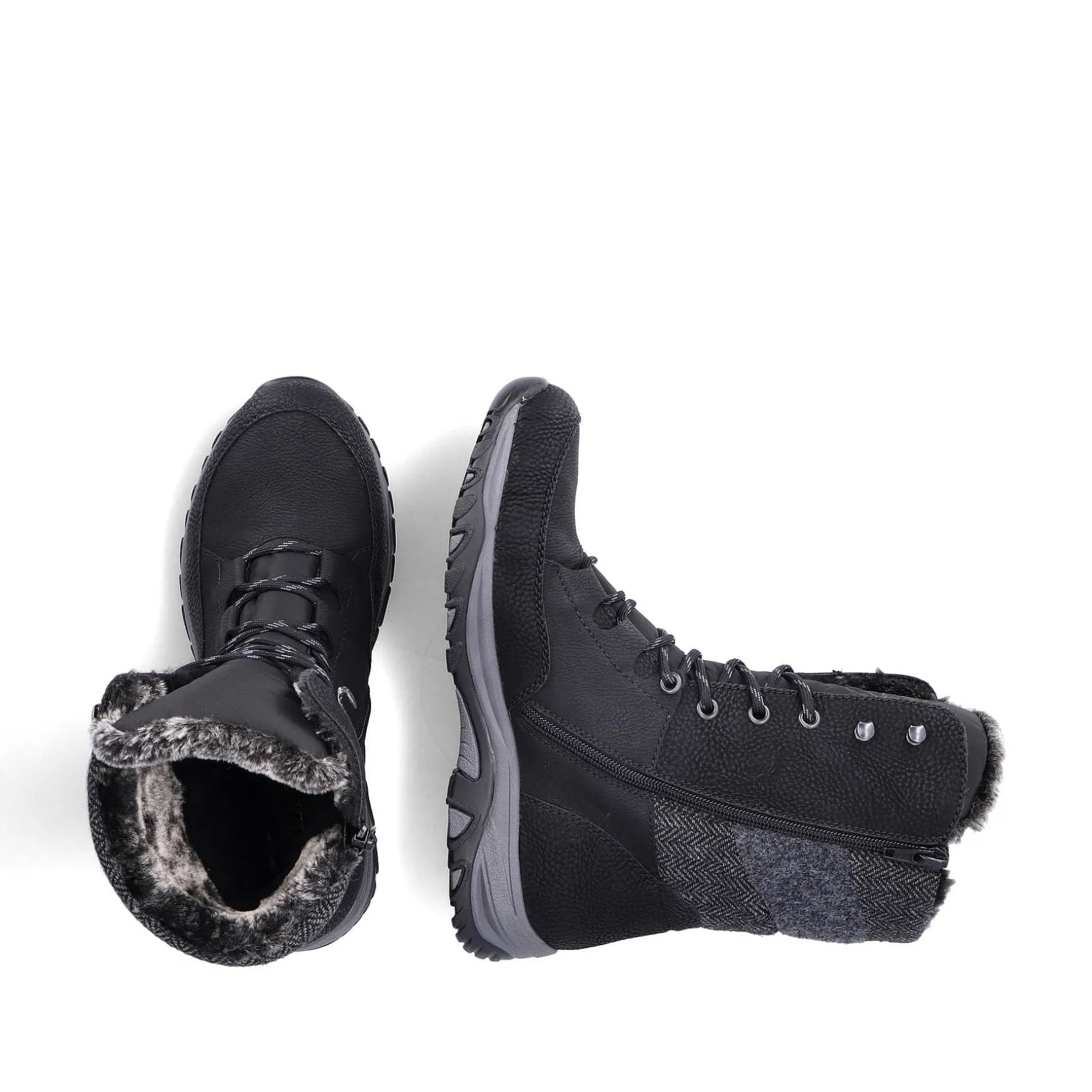 All-Time Favorite! These Jet Black Lace-Up Boots Are Perfect For Everyday Wear. The Lacing Is Complemented By A Zipper, Guaranteeing Ideal Support And A Perfect Fit. Thanks To The Robust Profile Sole, Every Step Is A Safe Affair. The Lace-Up Boots Are Super Comfortable Thanks To The Padded And Removable Insole. The Lace-Up Boots In A Comfortable Width Are Also Available Up To Shoe Size 43! A Cozy Warm Lining And The Proven Riekertex Technology Make These Lace-Up Boots The Ideal Companion In Any Weather. The Cool Season Can Come!
