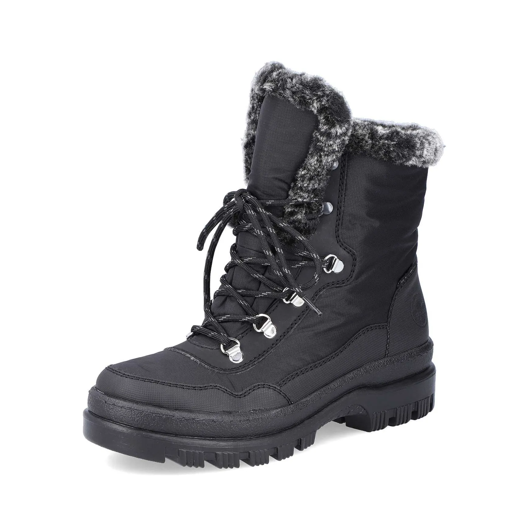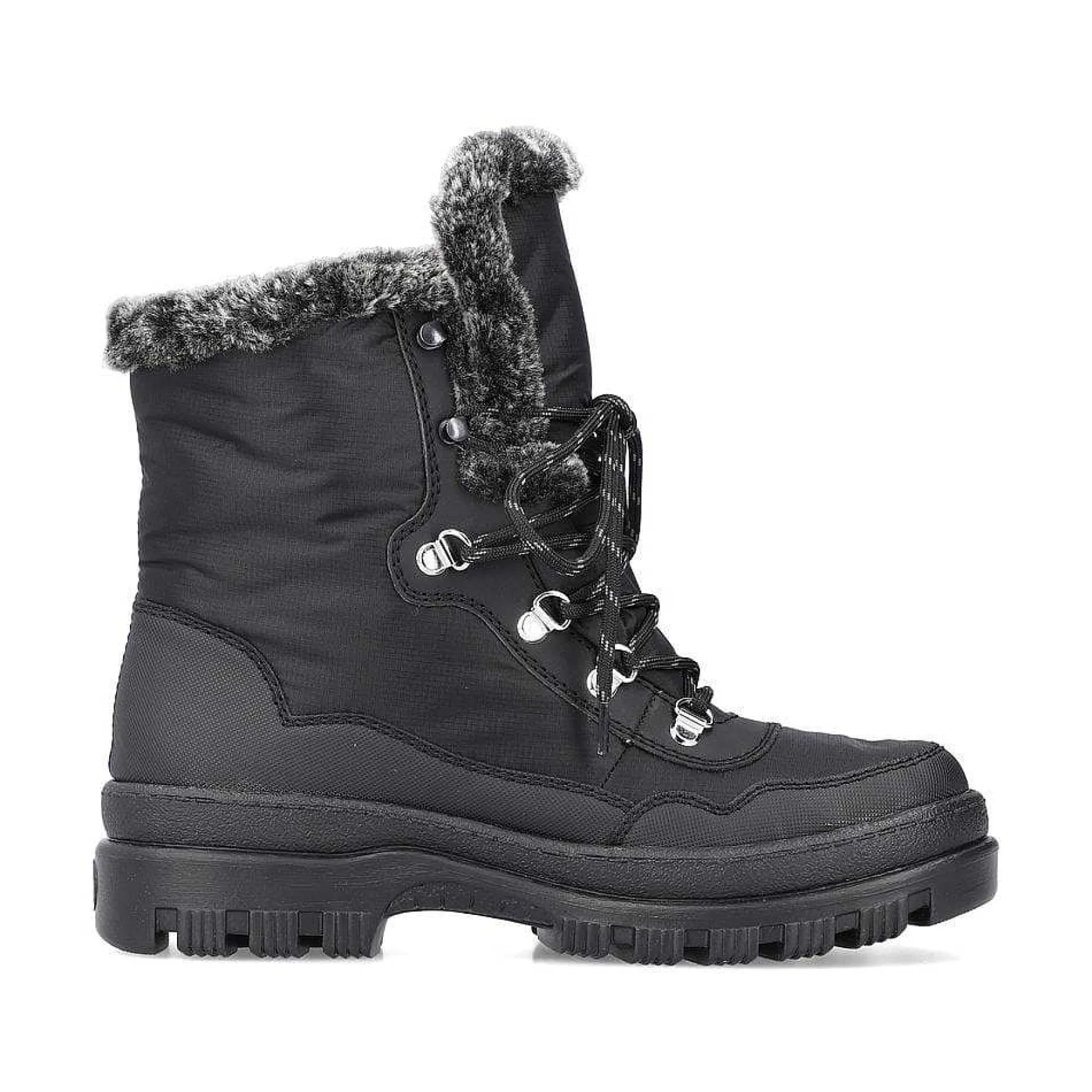 No More Freezing Feet! These Deep Black Lace-Up Boots From Rieker Guarantee A Heavenly Wearing Experience. The Lacing Gives The Shoe The Best Possible Fit On The Foot. The Shoe Has A Robust Profile Sole That Impresses With Good Grip For A Safe Step. The Removable Insole Is A Cool Feature That Provides Practical Comfort. When It Comes To Comfort, The Shoe Also Hits The Jackpot Thanks To The Water-Repellent Riekertex Membrane And The Fluffy Warm Lining. Simply Great!
