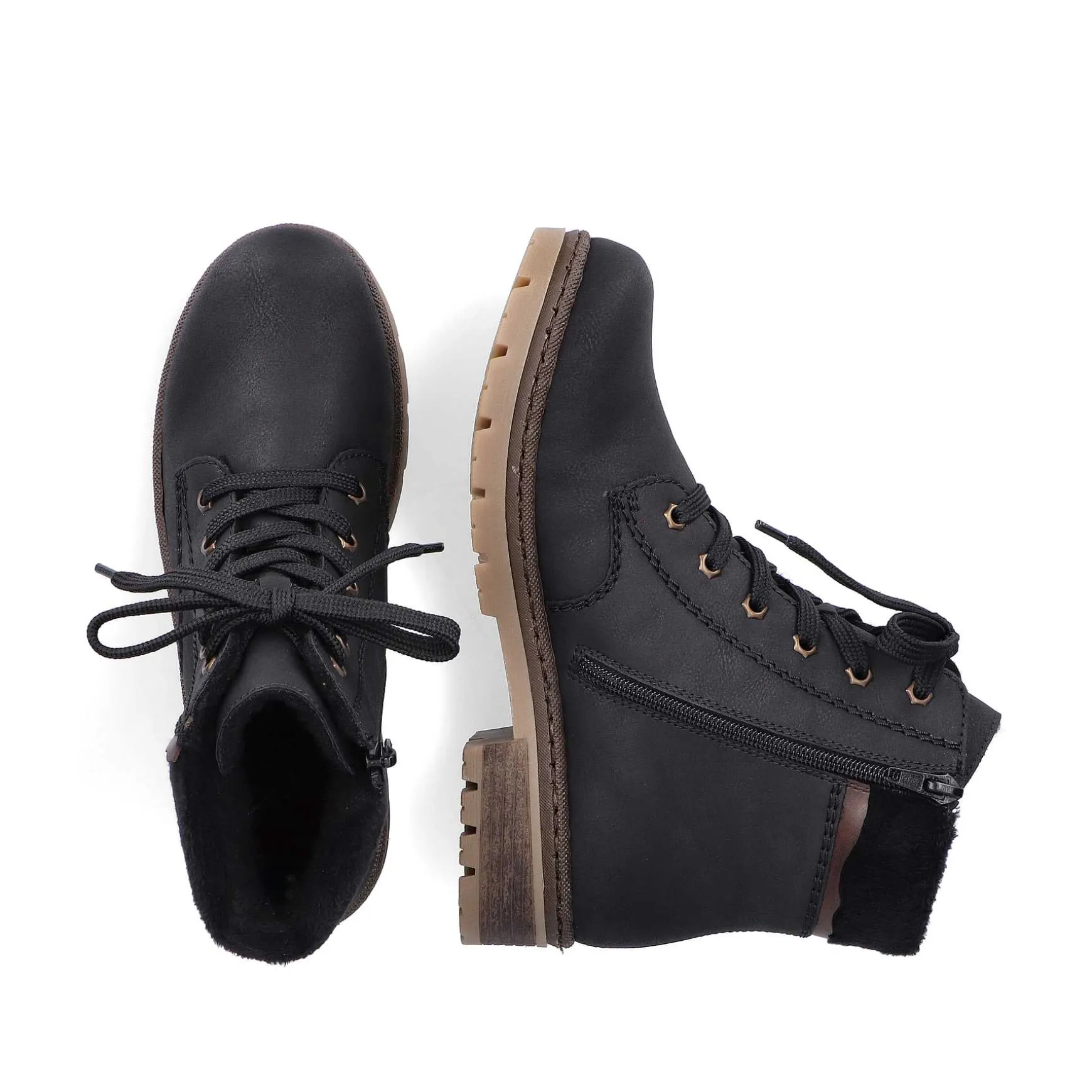 We Love Black! The Cold Season Wouldn’T Be Half As Fun Without These Stylish Graphite Black Lace-Up Boots From Rieker. The Clever Combination Of Lacing And Zipper Provides Optimal Support And Makes It Easy To Put On And Take Off. The Logo Element On The Shaft Is A Nice Detail. Its Robust Profile Sole Ensures Good Grip And The Extra Soft Insole Ensures Additional Comfort. The Soft Warm Lining Keeps Your Feet Cozy And Warm. 100% Favorite Shoe Potential!