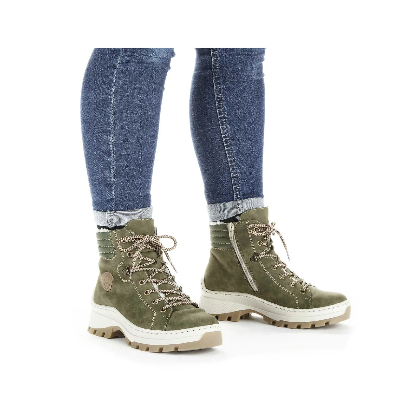 No More Cold Feet! Rieker Proves Once Again That You Can Combine Comfort With A Fashionable Look With These Leaf Green Lace-Up Boots. Despite The Lacing, The Shoe Can Be Easily Closed With A Zipper. The Robust Profile Sole Provides Good Grip At Every Turn. The Padded And Removable Insole Is A Cool Feature That Provides Practical Comfort. The Model Is Also The Perfect Choice For Women With Large Feet, Because The Shoe Is Available Up To Size 43. When It Comes To Comfort, You Also Hit The Mark Thanks To The Cozy Warm Lining. These Shoes Are The Perfect Symbiosis Of Style And Comfort!