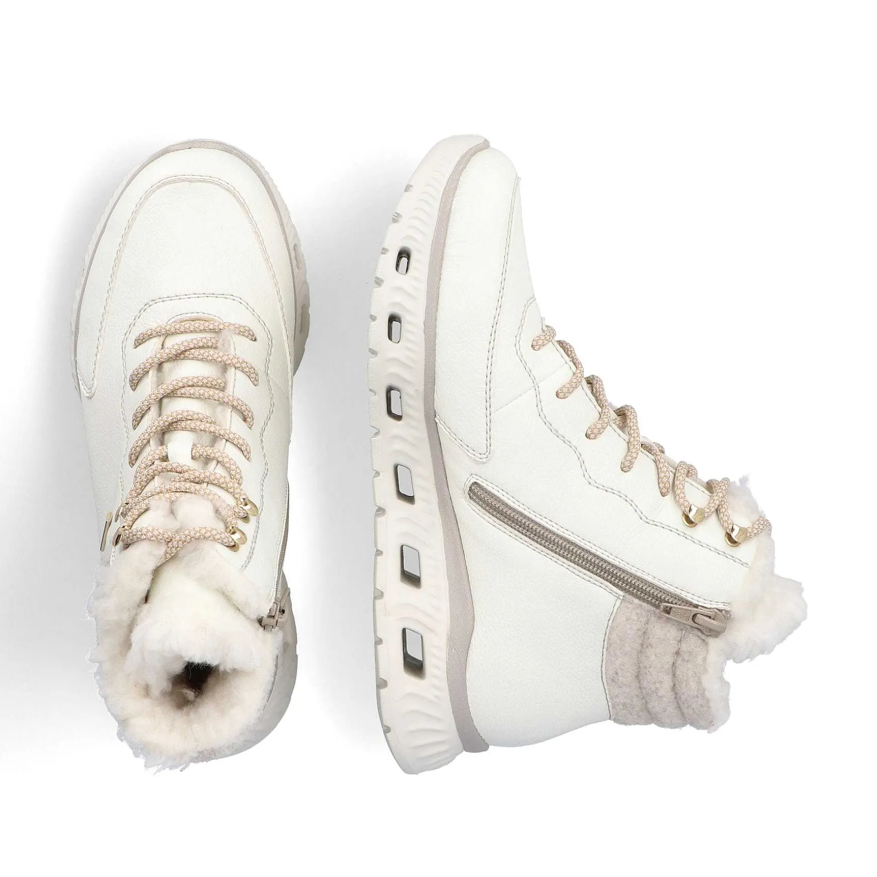 These White Sport & Style Lace-Up Boots For Women Made From High-Quality Faux Leather Are A Perfect Fit Thanks To Their Comfortable Width. The Shoes Are Warmly Lined And Are Also Water-Repellent And Breathable, Thanks To The Riekertex Membrane. The Top Combination Of Zipper And Lacing Makes Getting Started A Matter Of Seconds. The Flexible Eva Outsole Is Ultra-Light And The Memosoft Insole Is Extra Soft.