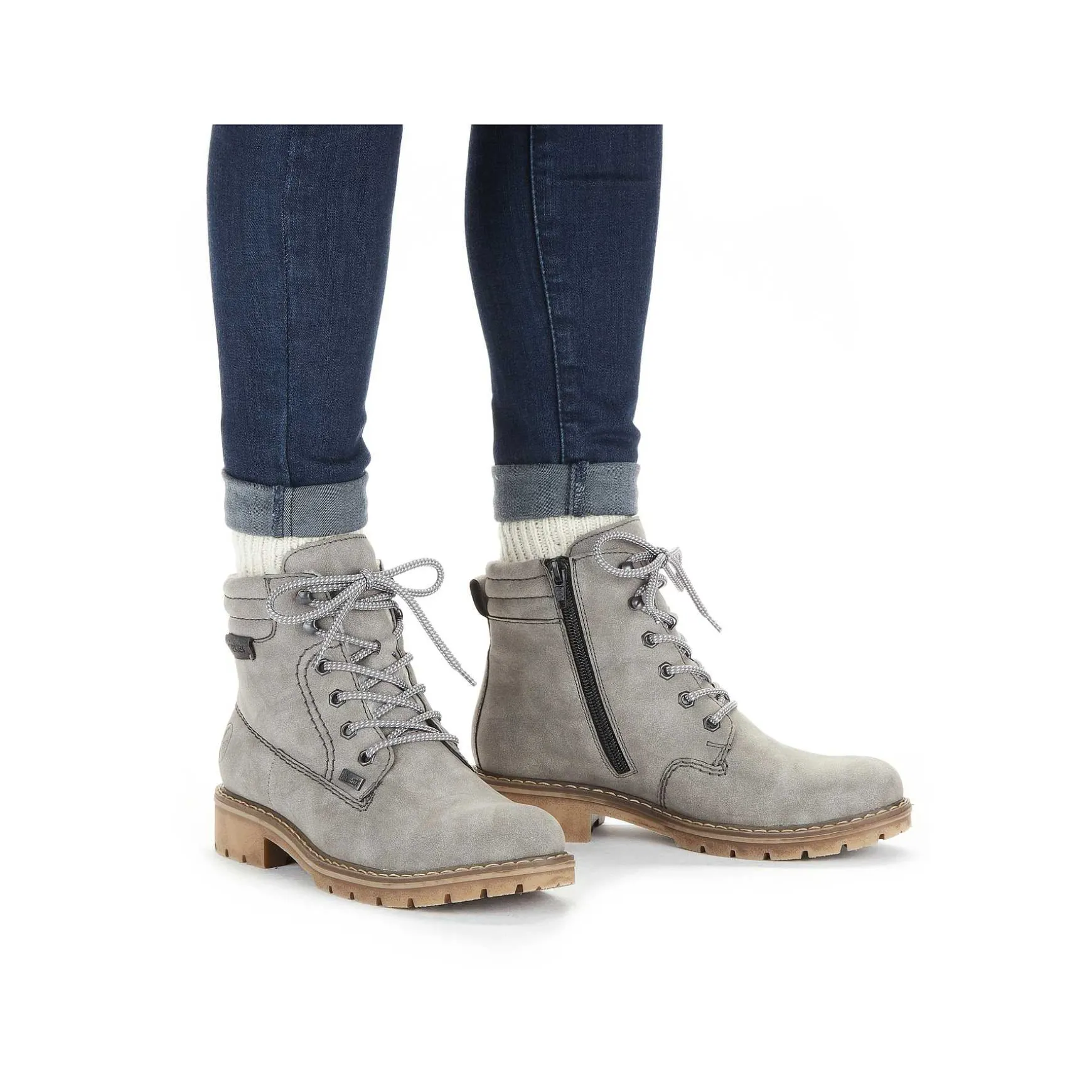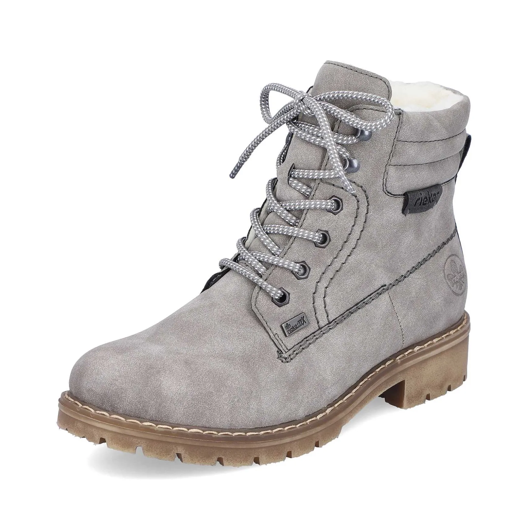 Stylish Or Comfortable? Why Or? The Cold Season Wouldn’T Be Half As Fun Without These Stylish Silver Gray Lace-Up Boots From Rieker. The Clever Combination Of Lacing And Zipper Provides Ideal Support And Makes It Easy To Put On And Take Off. The Contrasting Dark Gray Seams Skilfully Freshen Up The Design. Its Robust Profile Sole Ensures Good Grip And The Extra Soft Insole Ensures Additional Comfort. In Cold, Wet Weather, Your Feet Stay Dry Thanks To The Water-Repellent Surface, While The Warm Lining Ensures The Best Protection From The Cold. Simply Great!