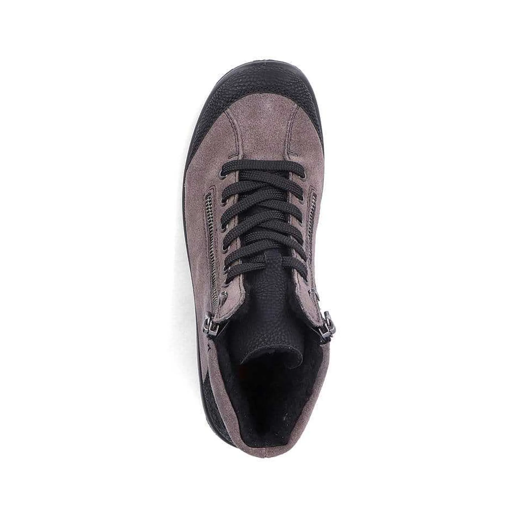 Gray Is Great. These Steel Gray Lace-Up Boots With An Ankle-High Shaft From Rieker Impress With Their Modern Design And High Level Of Comfort. The Clever Combination Of Zipper And Lacing Makes It Easy To Put On And Take Off. A Black, Round Cap Adds A Fresh Accent. The Light And Shock-Absorbing Profile Sole Is A Feel-Good Factor On Top. When It Comes To Comfort, The Shoe Also Hits The Jackpot Thanks To The Water-Repellent Riekertex Technology And The Fluffy Warm Lining.