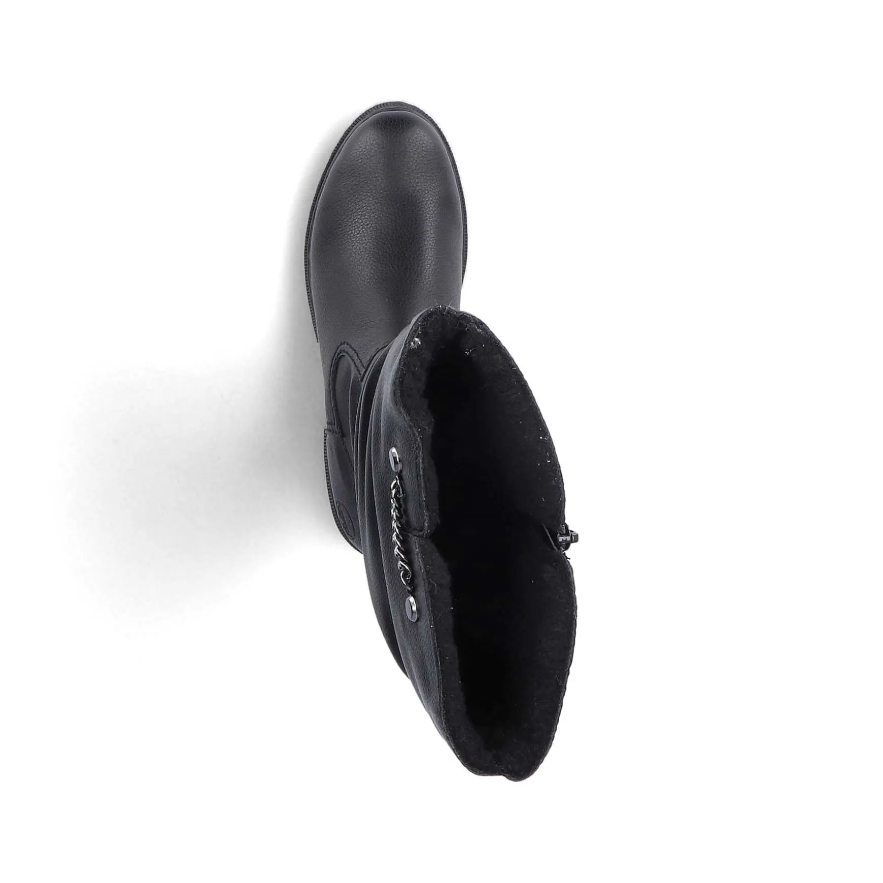 All In One Shoe! These Midnight Black High-Shaft Boots From Rieker Have Been Elaborately Crafted. The Zipper Makes It Easy To Put On And Take Off. The Decorative Chain On The Side Gives The Shoe That Certain Something. The Shoe Has A Robust Profile Sole That Impresses With Good Grip For A Safe Step. In Addition, The Cover Sole Is Extra Soft. For All Ladies With Size 43, These High-Shaft Boots Are Also Available In Oversizes. With The Soft Warm Lining, The Shoes Are Ideally Equipped For Cold Temperatures. The Cold No Longer Has A Chance!