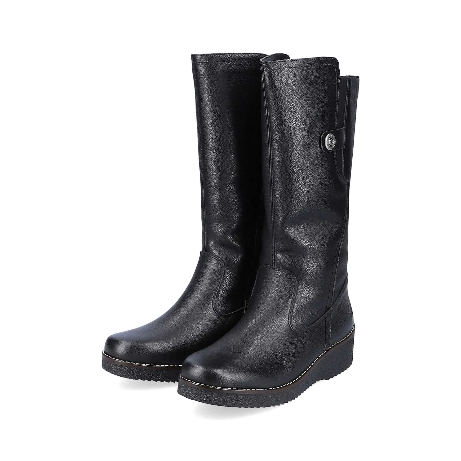 Cool And Casual Through The Frosty Days! With These Everyday Deep Black High-Top Boots Made Of Smooth Leather From Rieker, You’Ll Be On The Move In Maximum Comfort And Ultimate Style. The Shoe Can Be Put On Very Quickly Thanks To The Zipper. The Silver Decorative Button On The Side Provides That Certain Something. The Robust Profile Sole Provides Good Grip At Every Turn. Particularly Cozy And Very Warm Virgin Wool Makes These High-Shaft Boots The Ideal Companion In Any Weather. Fashionable Well-Being In The Style Of Rieker!