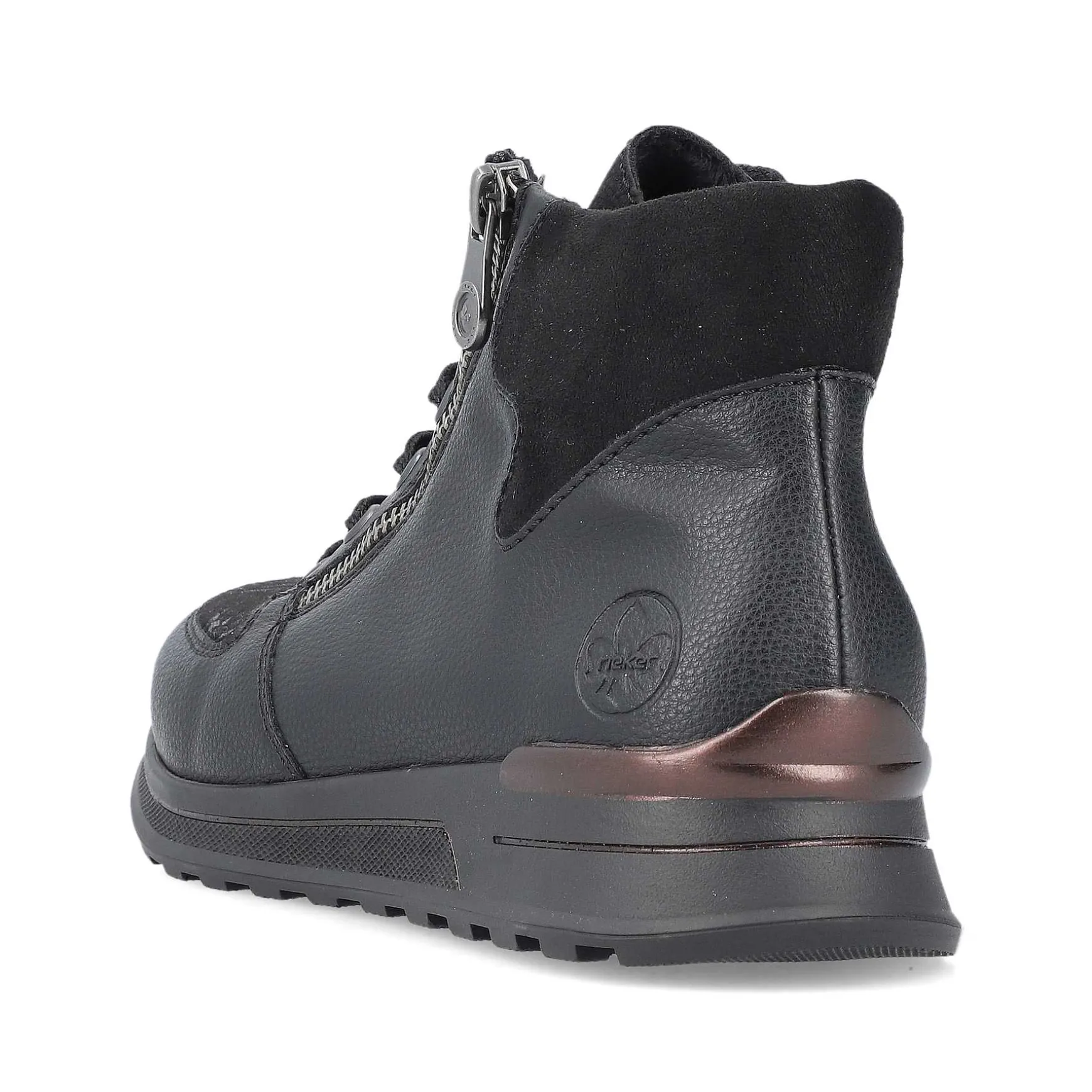 Easy Walking, Easy Living! These Deep Black Rieker Lace-Up Shoes For Women Are A Comfortable Companion. A Lacing Complements The Zipper And Ensures Functionality And Comfort. With The Light And Shock-Absorbing Sole, Your Feet Enjoy The Best Walking Comfort With Every Step. The Lace-Up Shoes Have A Padded And Removable Insole That Is Like A Vacation For Your Feet! The Model Is Available In Oversizes And Is Cut Extra Wide So That The Feet Are In No Way Restricted. Fashionable Well-Being In The Style Of Rieker!