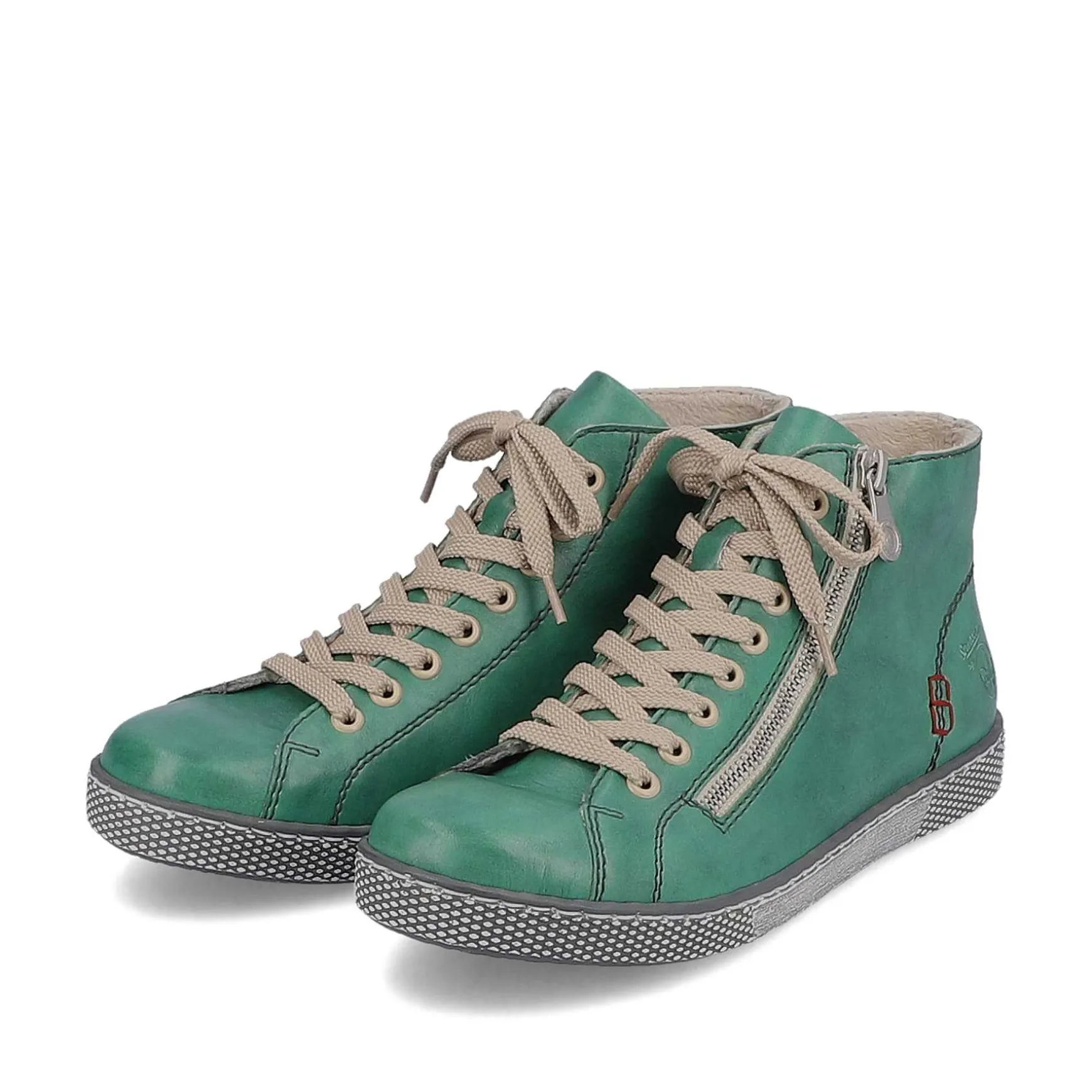 Fashion Meets Function. These Emerald Green Rieker Lace-Up Shoes For Women Combine Cool Design With The Best Comfort And High Functionality. The Lacing Is Complemented By A Zipper, Guaranteeing Optimal Hold And A Perfect Fit. The Contrasting Black Seams Add That Certain Something. The Robust Profile Sole Impresses Across The Board. The Lace-Up Shoes Are Super Comfortable Thanks To The Removable Insole. Waiting For What?
