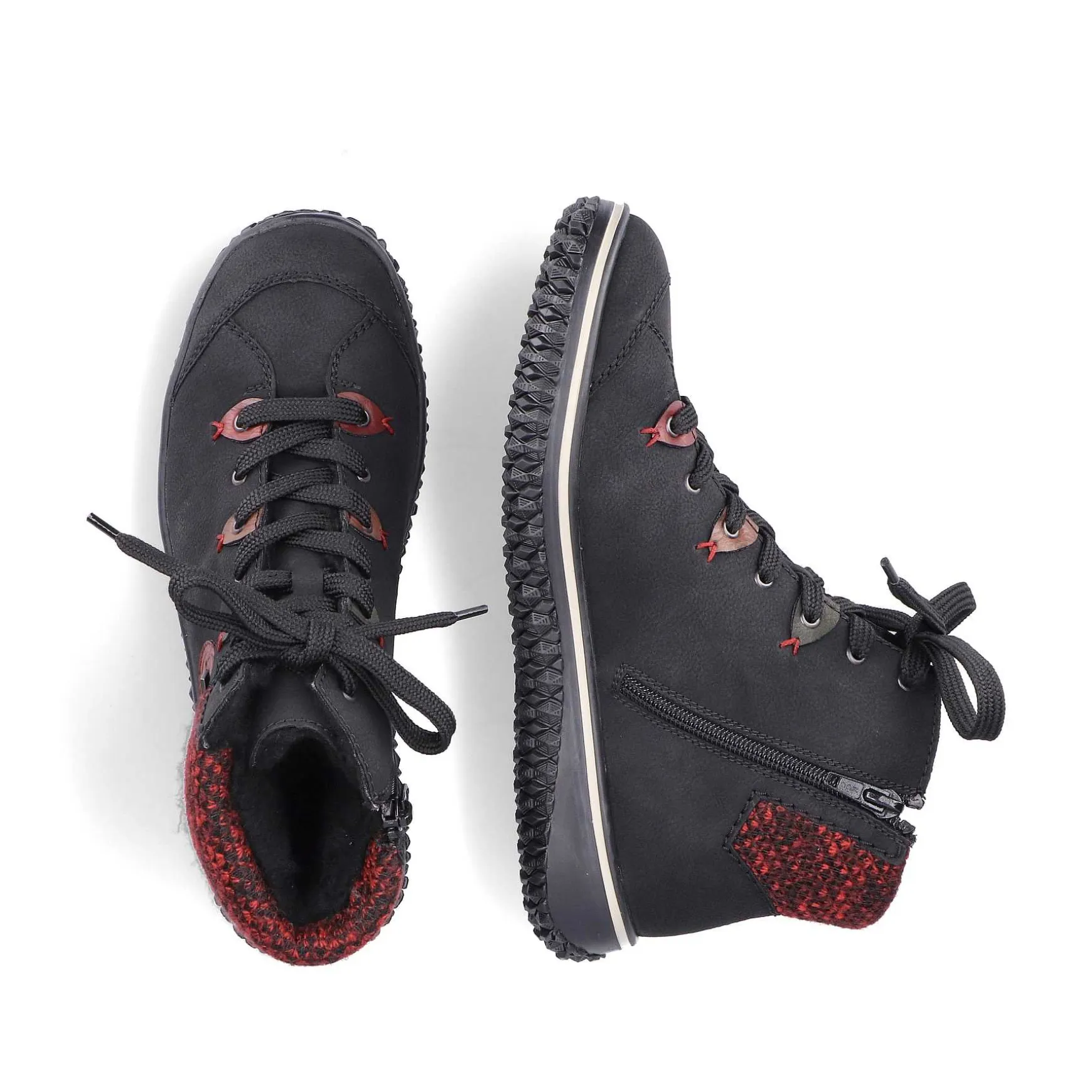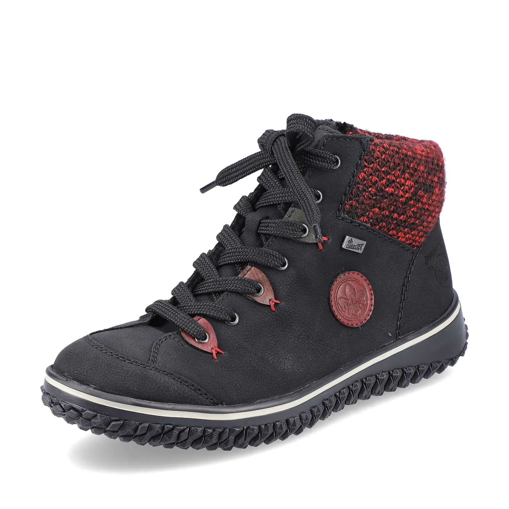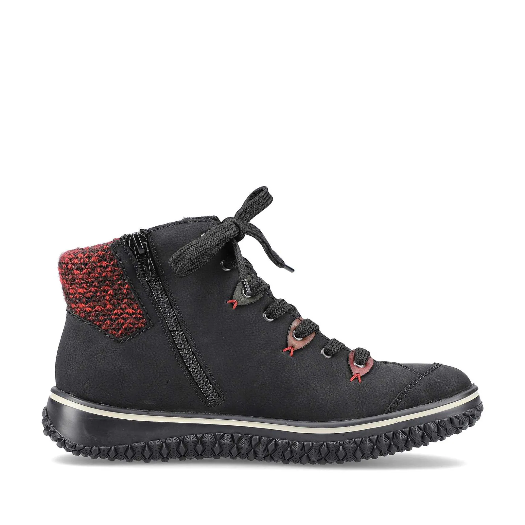 All-Time Favorite! With These Graphite Black Lace-Up Shoes, The Cold Is A Foreign Word. In Addition To The Lacing, The Model Also Has A Zipper And Ensures A Good Hold. The Stylish Multicolored Eyelets Are Real Eye-Catchers. The Robust Profile Sole Provides Good Grip At Every Turn. When It Comes To Comfort, The Shoe Also Hits The Jackpot Thanks To The Water-Repellent Riekertex Membrane And The Fluffy Warm Lining. Fashionable Well-Being In The Style Of Rieker!