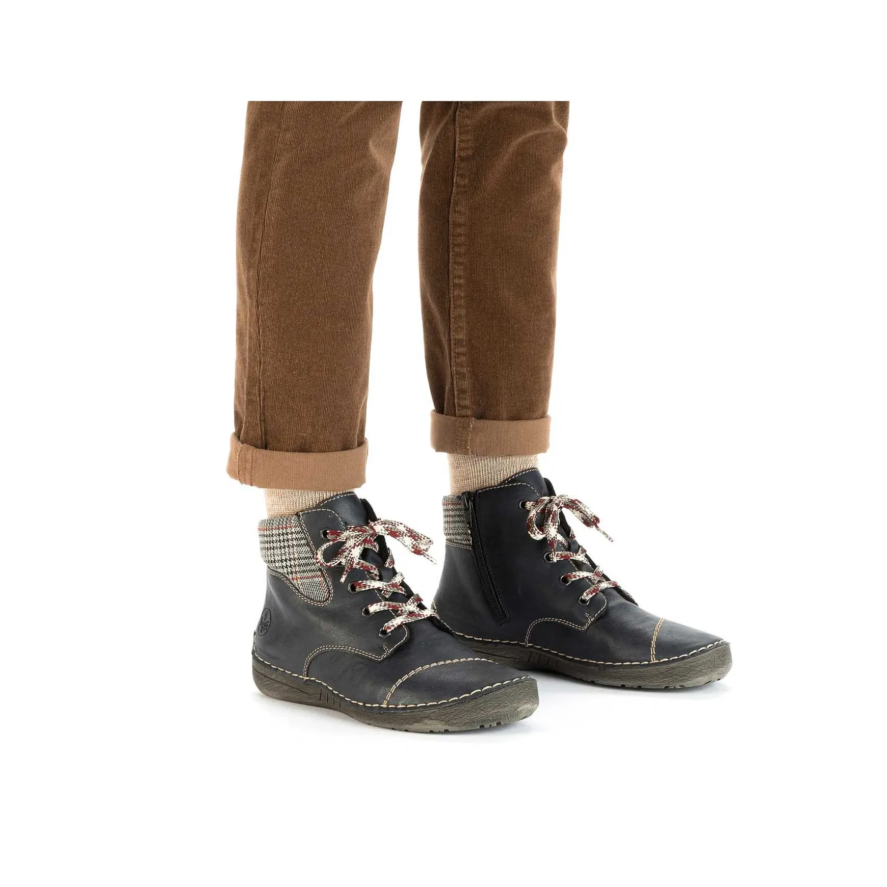 Style And Comfort – Best Friends Forever! Without These Stylish Steel Blue Rieker Lace-Up Shoes For Women, The Cold Season Would Only Be Half As Fun. The Clever Combination Of Lacing And Zipper Makes It Easy To Put On And Take Off. The Checked Pattern On The Shaft Provides That Certain Something. The Light And Shock-Absorbing Sole Pampers Your Feet With Every Step. Another Plus Is The Extra Soft Insole. When It Comes To Comfort, You’Ll Also Hit The Mark Thanks To The Cozy Warm Lining. Nothing Stands In The Way Of Long Walks!