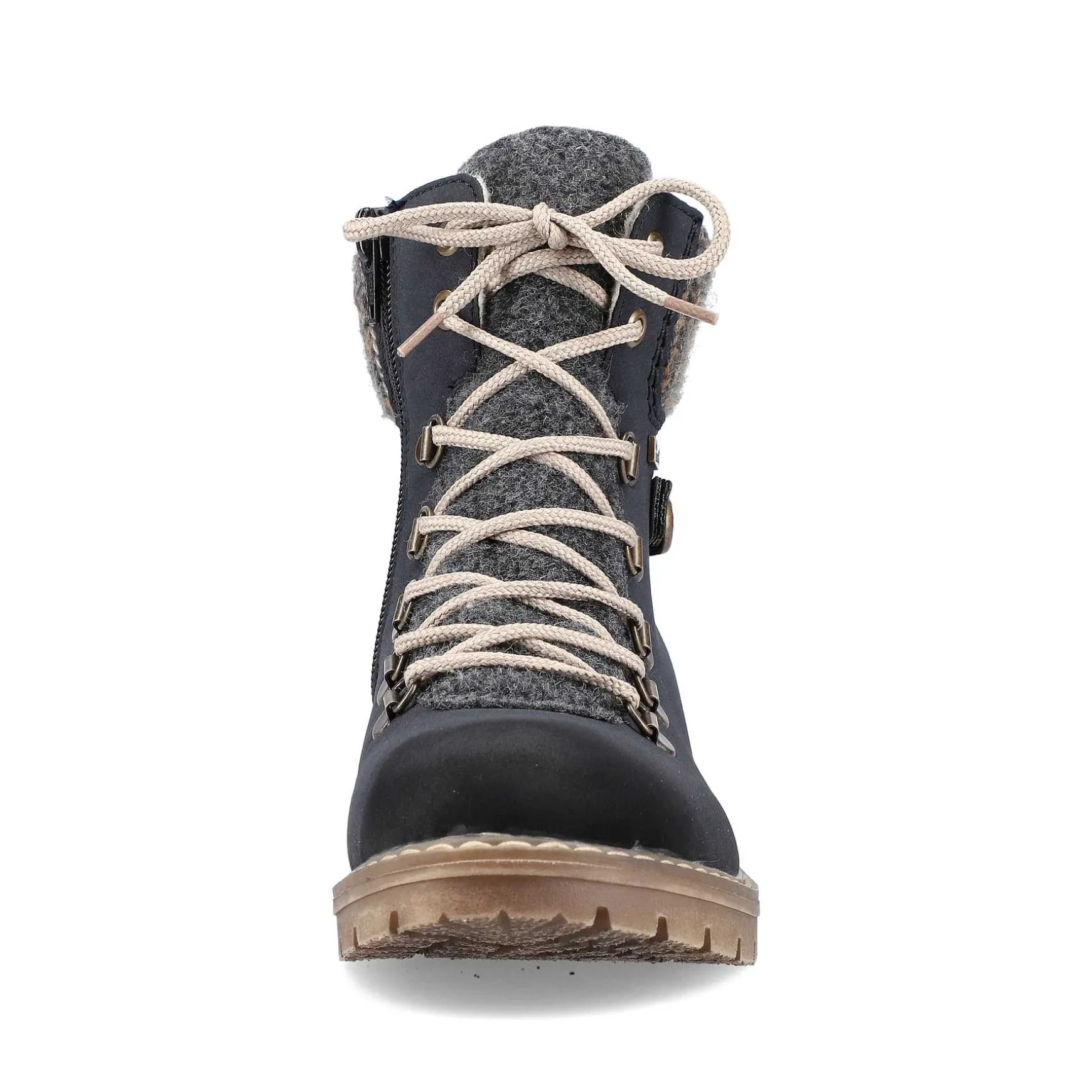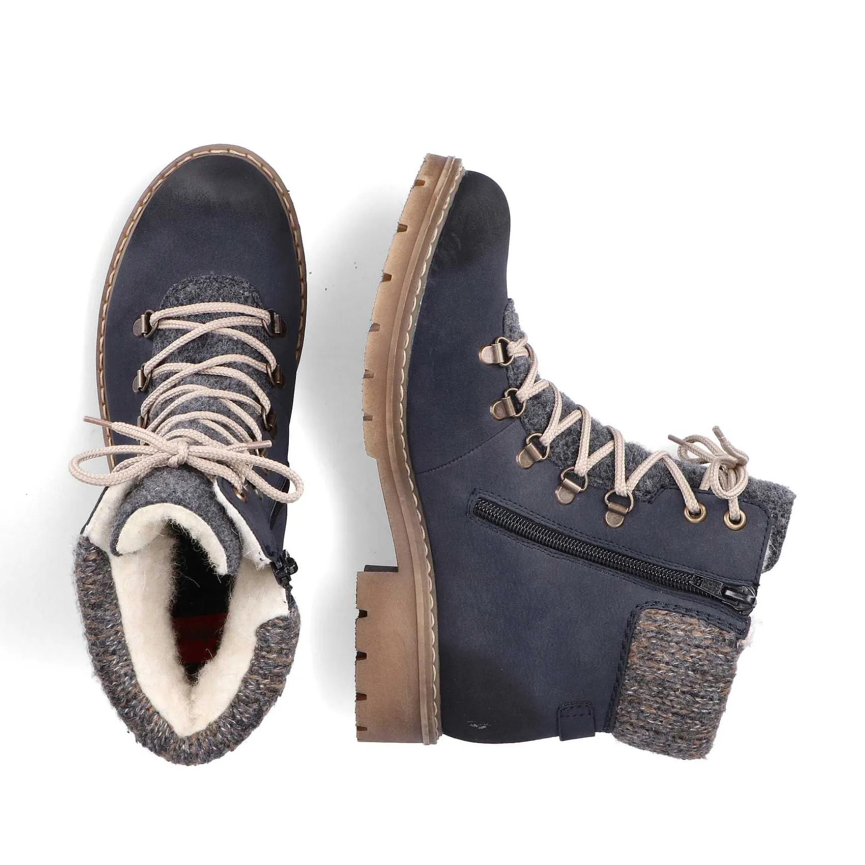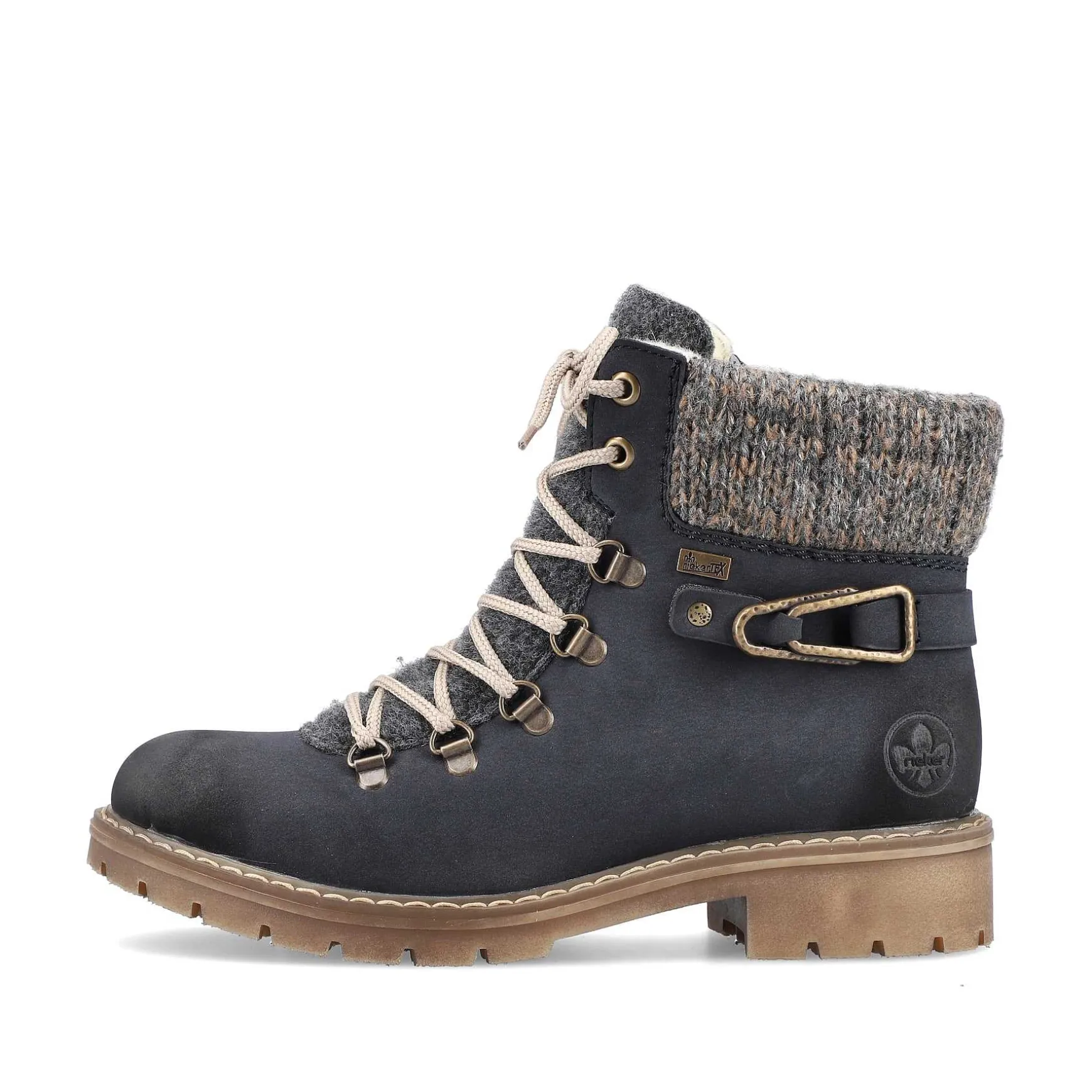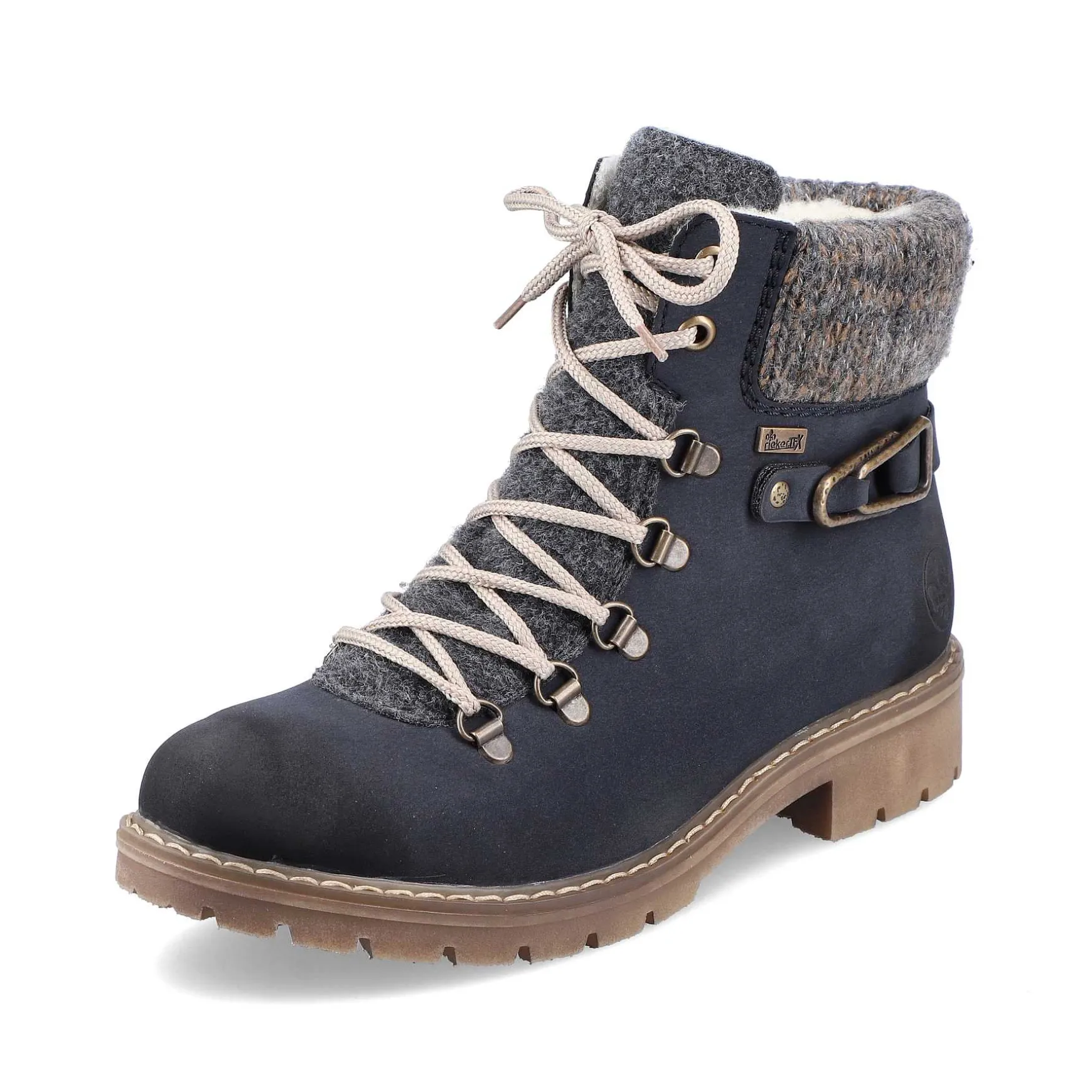 They Follow You Every Step Of The Way! These Ocean Blue Lace-Up Boots From Rieker Combine Cool Design With The Best Comfort And High Functionality. The Lacing Is Complemented By A Zipper, Thus Guaranteeing A Good Hold And A Perfect Fit. The Metallic Decorative Elements On The Side Harmoniously Round Off The Look Of The Shoe. Its Robust Profile Sole Ensures Good Grip And The Cover Sole Is Extra Soft. The Particularly Cozy Warm Lining Keeps Your Feet Warm All Day Long And The Riekertex Technology Keeps Them Dry! Carefree Through The Cold Season!