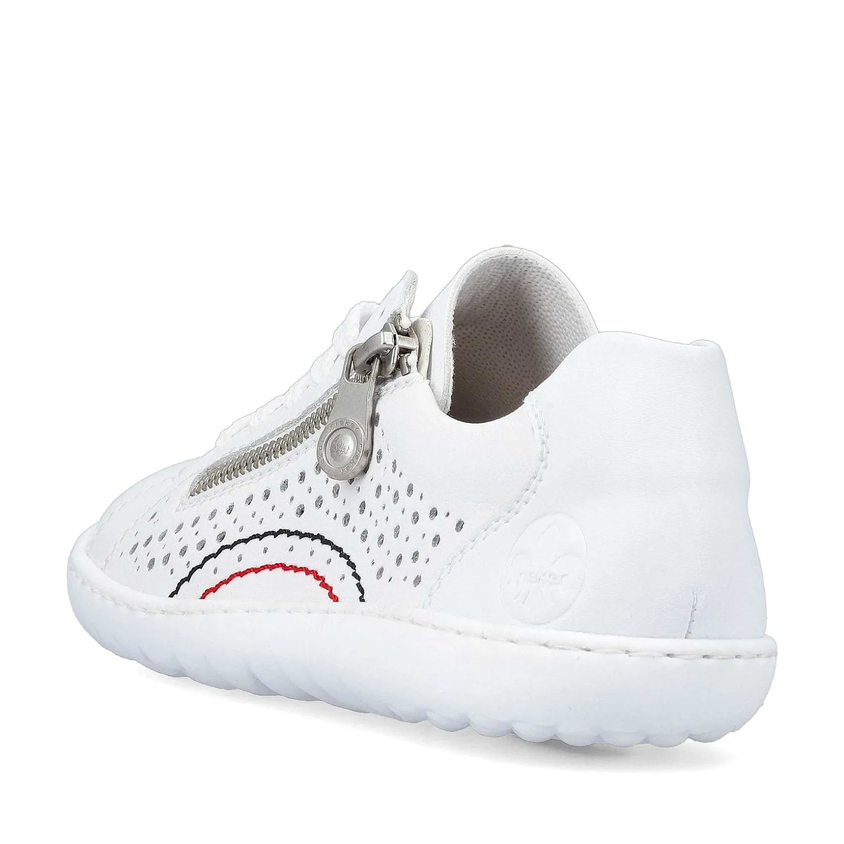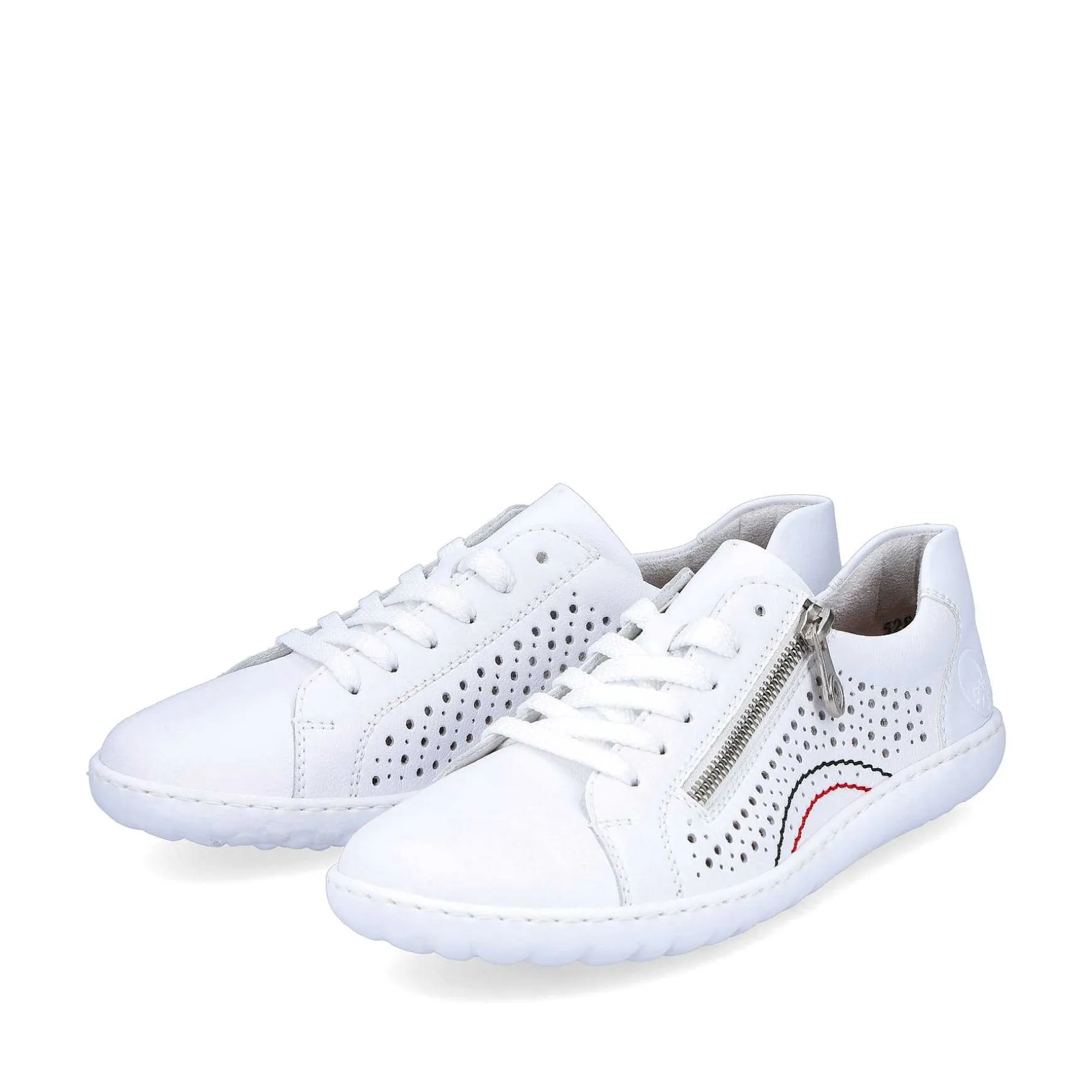 All-Rounder! These Pearl White Rieker Lace-Up Shoes For Women Made Of Smooth Leather Feel Like Barefoot! In Addition To The Zipper, The Model Also Has Lacing, Ensuring The Best Possible Hold. The Openwork Style Is A Pretty Detail. With The Shock-Absorbing And Very Light Sole, Your Feet Enjoy The Best Walking Comfort With Every Step. All In One – Great!