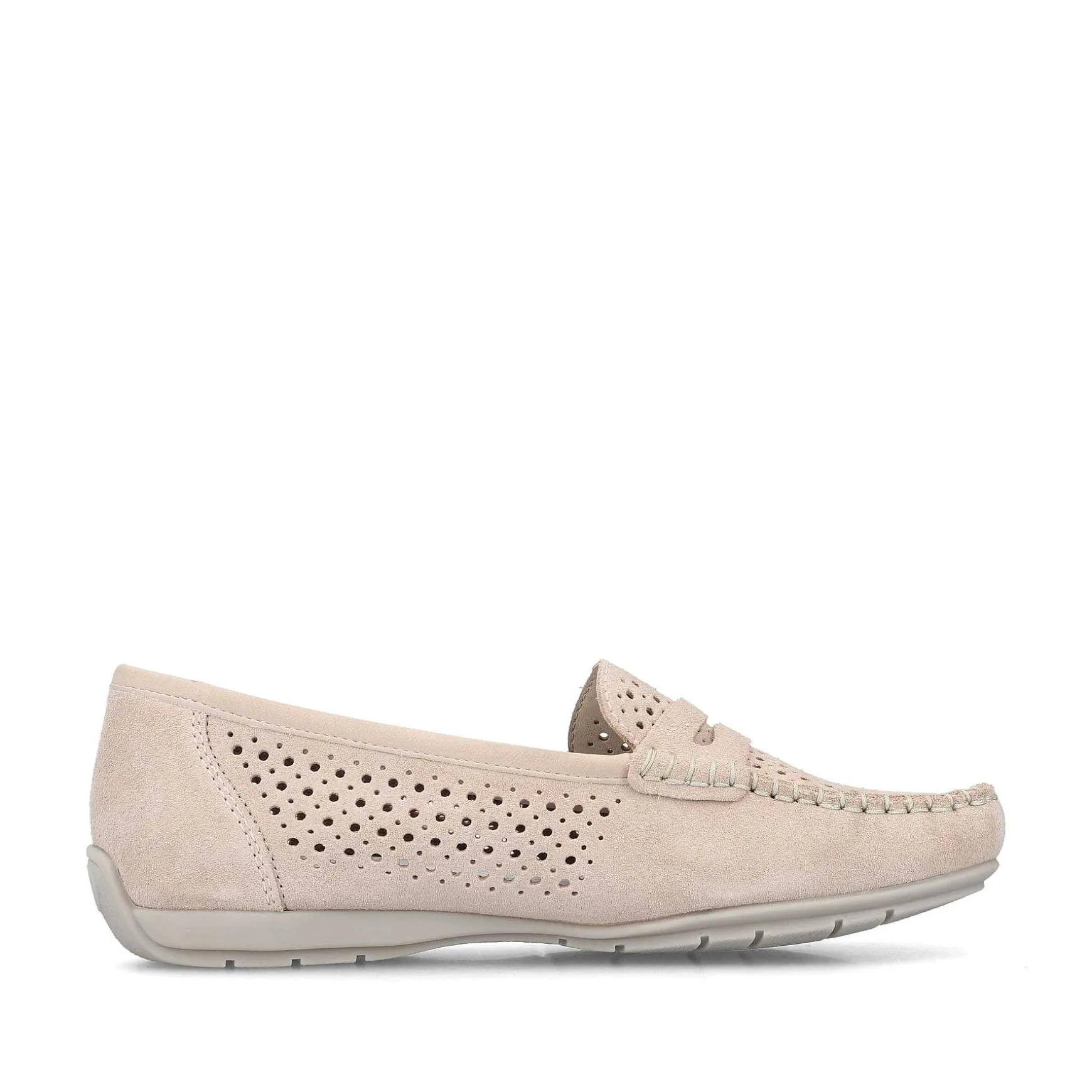 Style And Comfort – Forever Inseparable! These Soft Pink Rieker Loafers For Women Made Of Suede Are Perfect For Every Day. Without A Fastener, The Shoes Can Also Be Put On Quickly. The Openwork Style Adds That Certain Something. The Sole Is Easy To Grip And Ensures Good Grip At All Times. In Addition, The Extra Soft Insole Ensures An Extra Portion Of Comfort. Thanks To The Narrow E 1/2 Fit, The Foot Has A Good Grip In The Shoe. This Will Make The Warm Season Even Better!