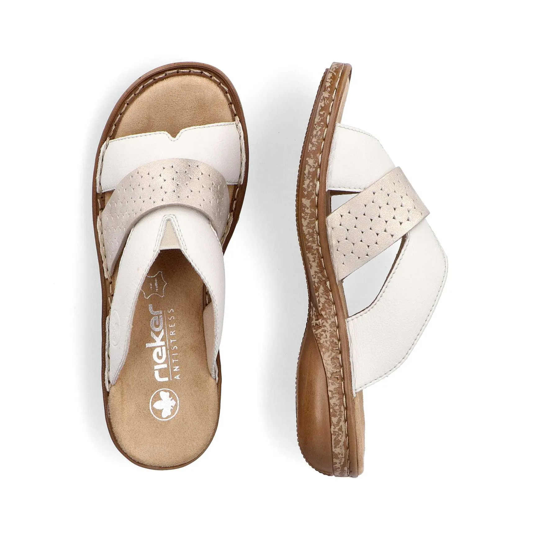 Style Or Comfort? Why Or? These Rieker Mules For Women In Pure White Made Of Smooth Leather Let Your Feet Really Feel The Summer. The Shoe Has No Closure And Can Be Put On In No Time. The Openwork Style Is A Beautiful Eye-Catcher. The Lightweight And Shock-Absorbing Sole Of The Mules Offers The Best Walking Comfort. Thanks To The Narrow E 1/2 Fit, The Mules Offer Additional Support. More Is Not Possible!