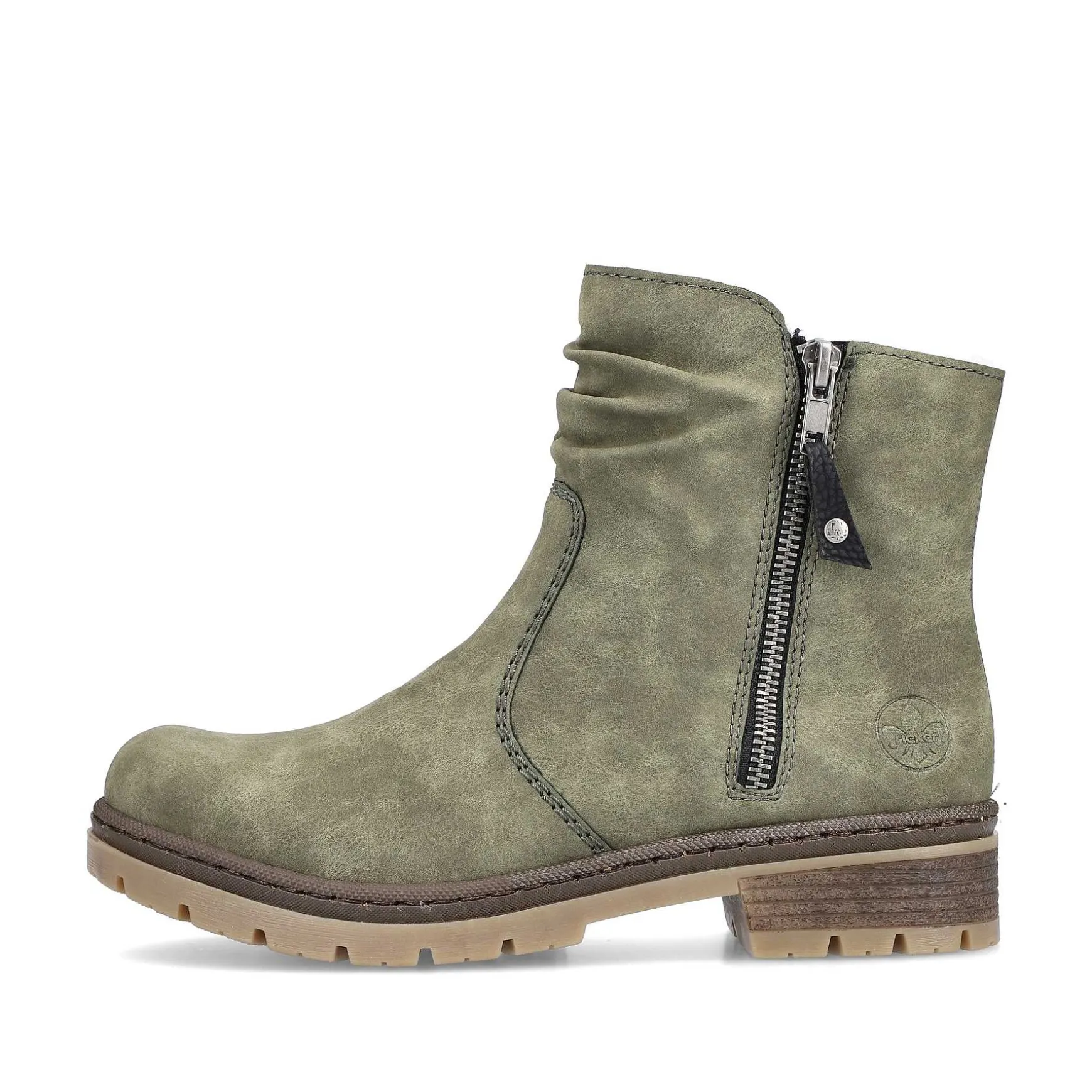 Never Have Cold Feet Again! Rieker Proves Once Again That You Can Combine Comfort With A Fashionable Look With These Leaf Green Short Boots. The Side Zipper Makes It Easy To Put On And Take Off. The Robust Profile Sole Impresses Across The Board And The Cover Sole Is Extra Soft. Soft Warm Lining Makes These Short Boots The Ideal Companion – No Matter When, No Matter Where! Fashionable Wellness Feeling In The Style Of Rieker!