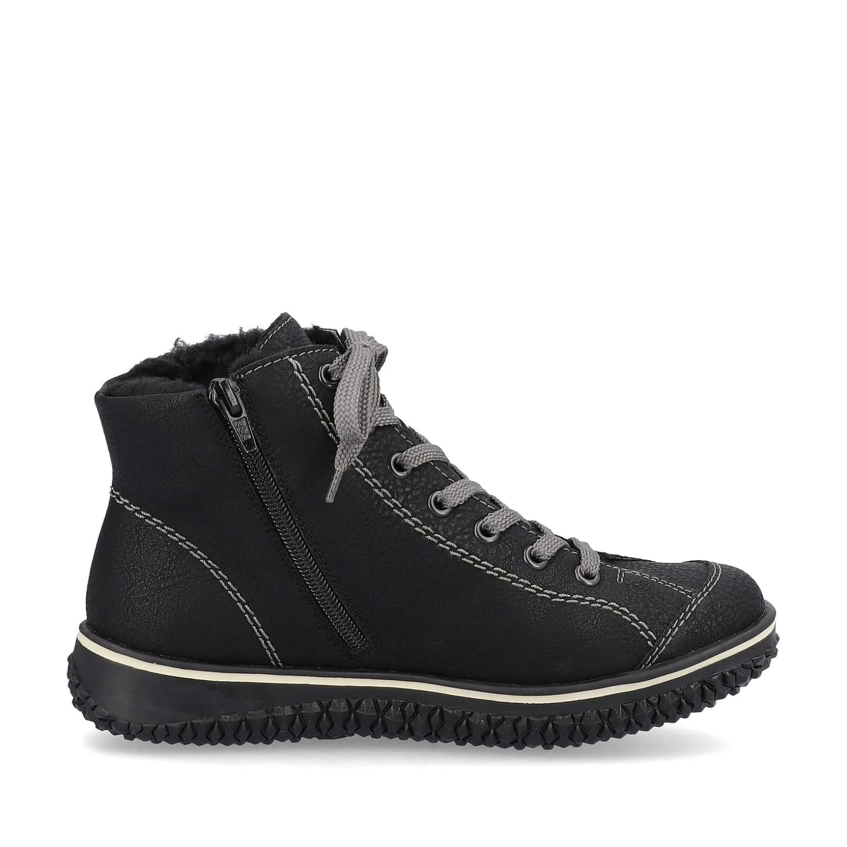 It Couldn’T Be More Comfortable! These Midnight Black Rieker Short Boots For Women Not Only Look Super Trendy, They Also Protect Your Feet From The Cold. The Lacing Is Complemented By A Zipper, Thus Guaranteeing The Best Possible Hold And An Ideal Fit. The Shoe Has A Robust Profile Sole That Impresses With Good Grip For A Safe Step. The Combination Of Water-Repellent Riekertex Membrane And Cozy Warm Lining Ensures Warm And Dry Feet – Perfect For Wet And Cold Days. Waiting For What?