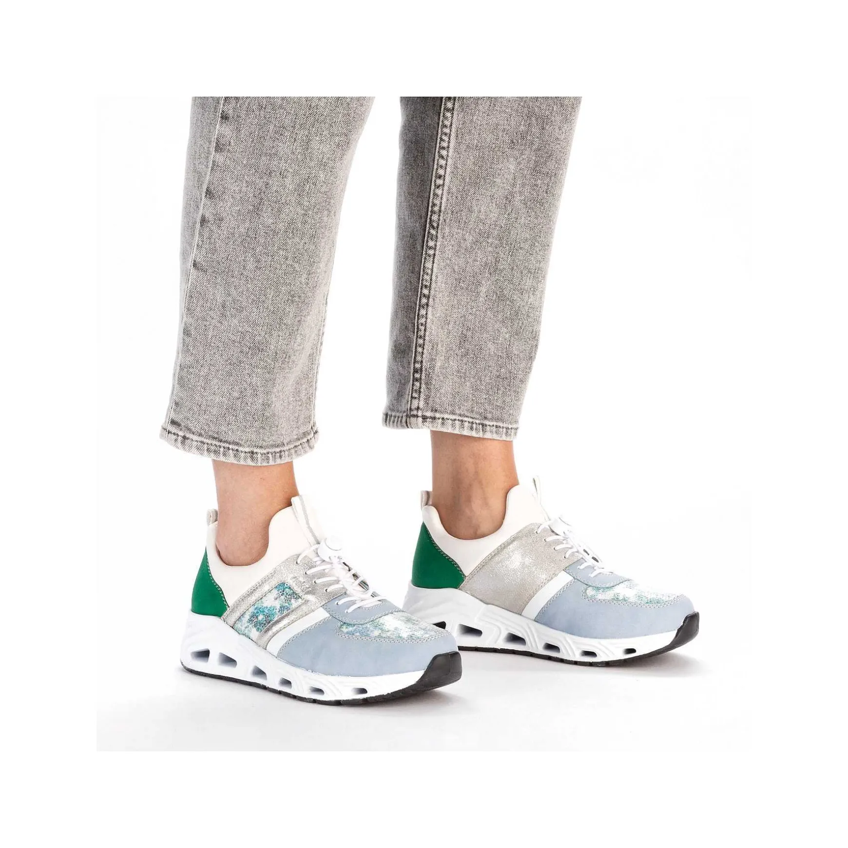 Rieker Women’S Slippers Baby Blue-Cream White