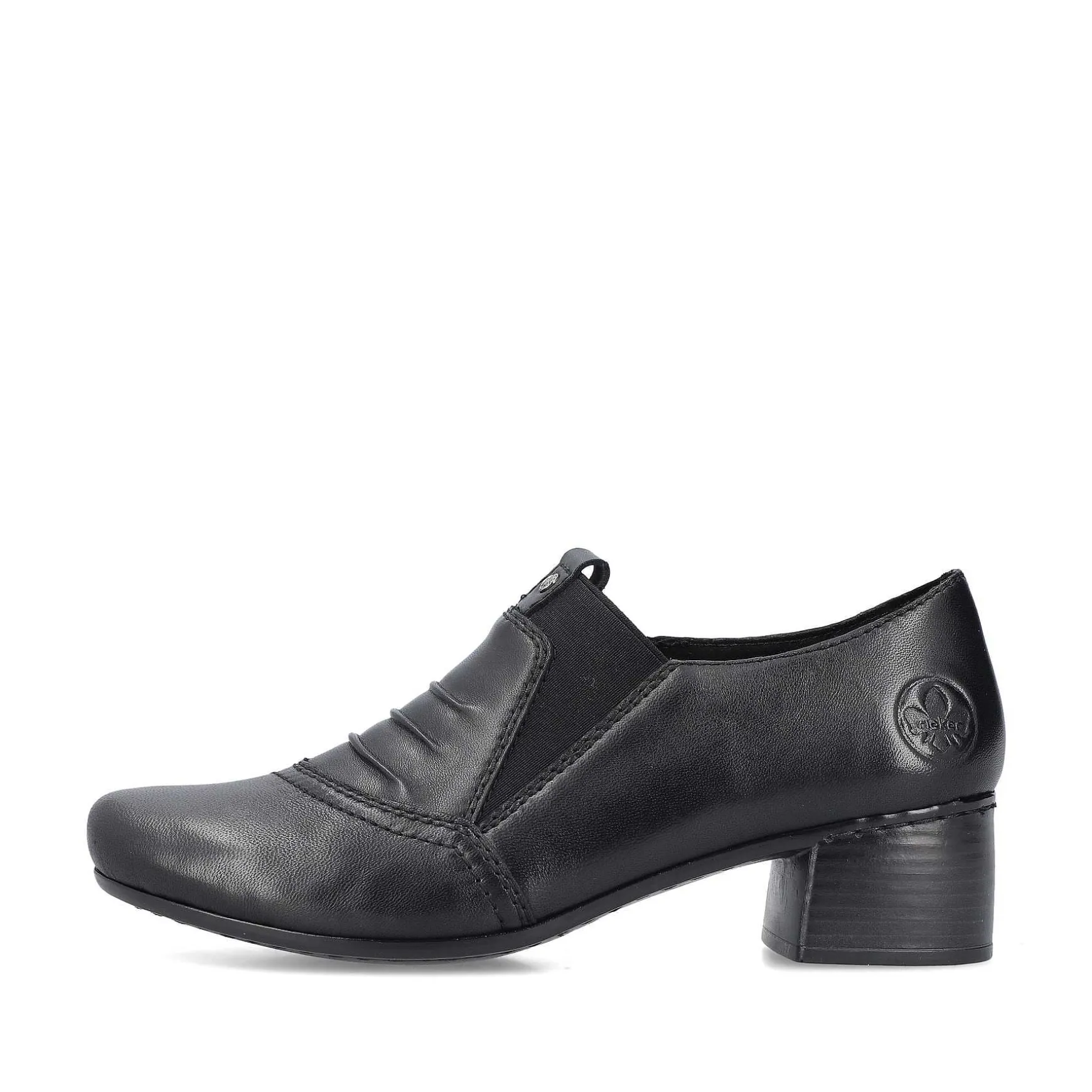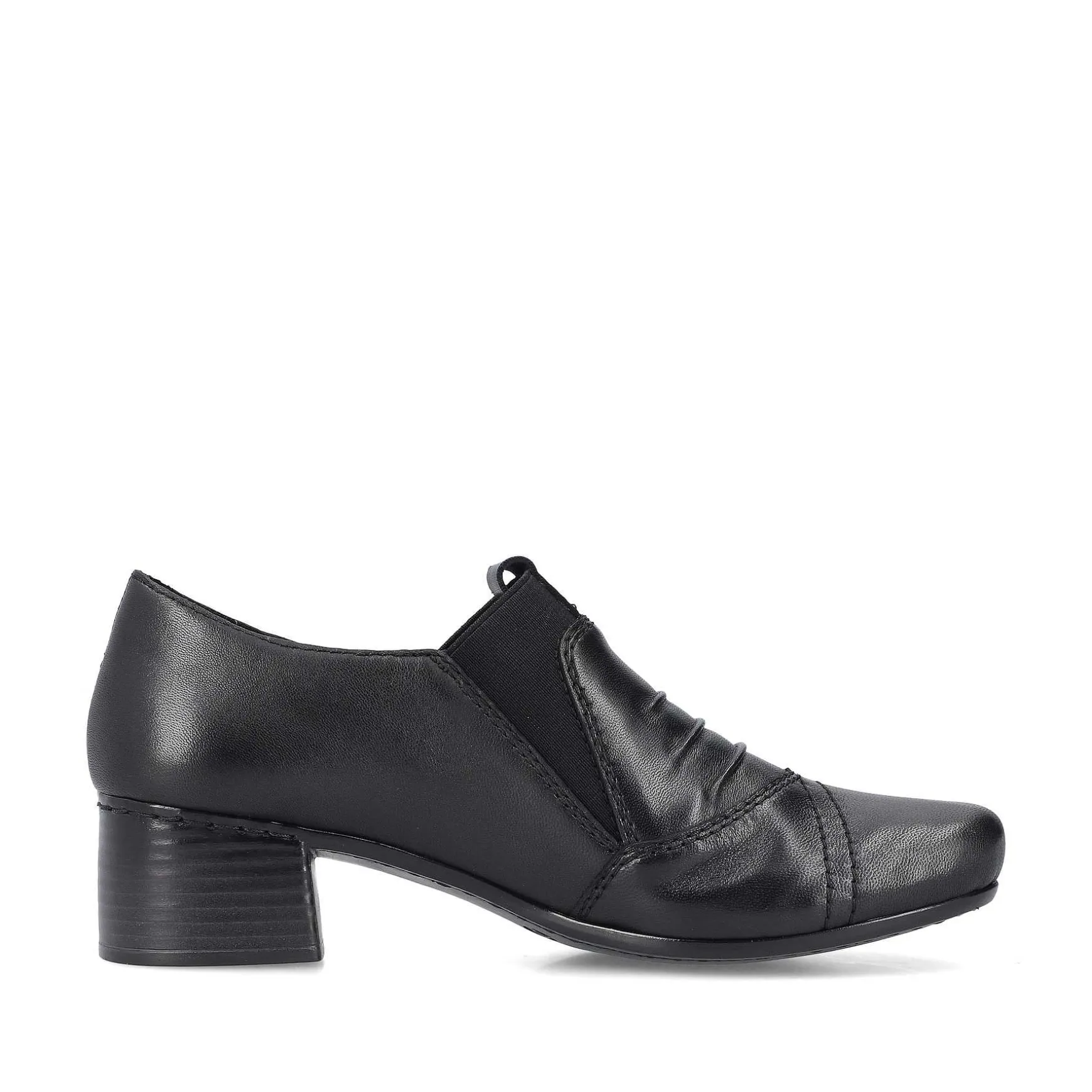 We Love Black! These Deep Black Slippers Made Of Smooth Leather From Rieker Have Been Elaborately Crafted. The Elastic Insert Also Ensures That The Shoe Stays In Place At All Times. The Light And Shock-Absorbing Sole With Block Heel Pampers Your Feet With Every Step. Thanks To The Soft And Particularly Breathable Leather Insole, The Best Comfort And Sophisticated Functionality Are Guaranteed. Attention, Favorite Shoe Potential!