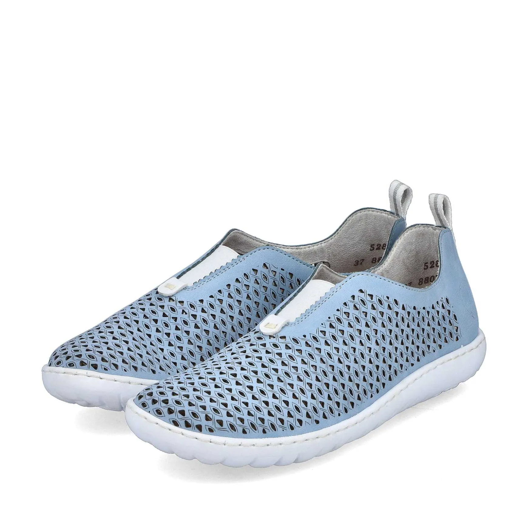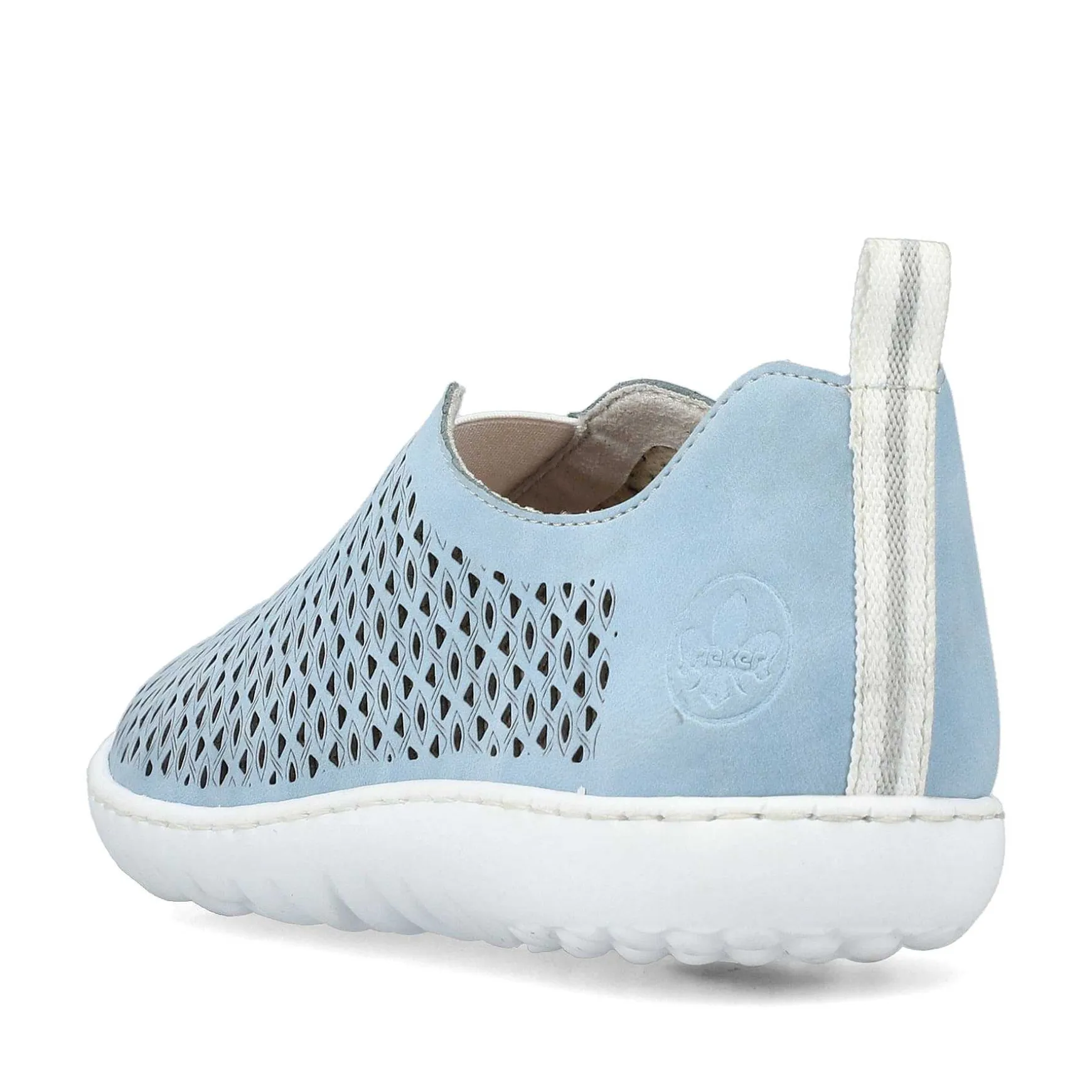 Always One Step Ahead! These Light Blue Rieker Slippers For Women Feel Like Barefoot! The Elastic Insert Makes Putting On And Taking Off Easy And Comfortable. The Openwork Style Harmoniously Completes The Look Of The Shoe. The Very Light And Shock-Absorbing Sole Ensures A Comfortable Fit. Slip In And Feel Good!