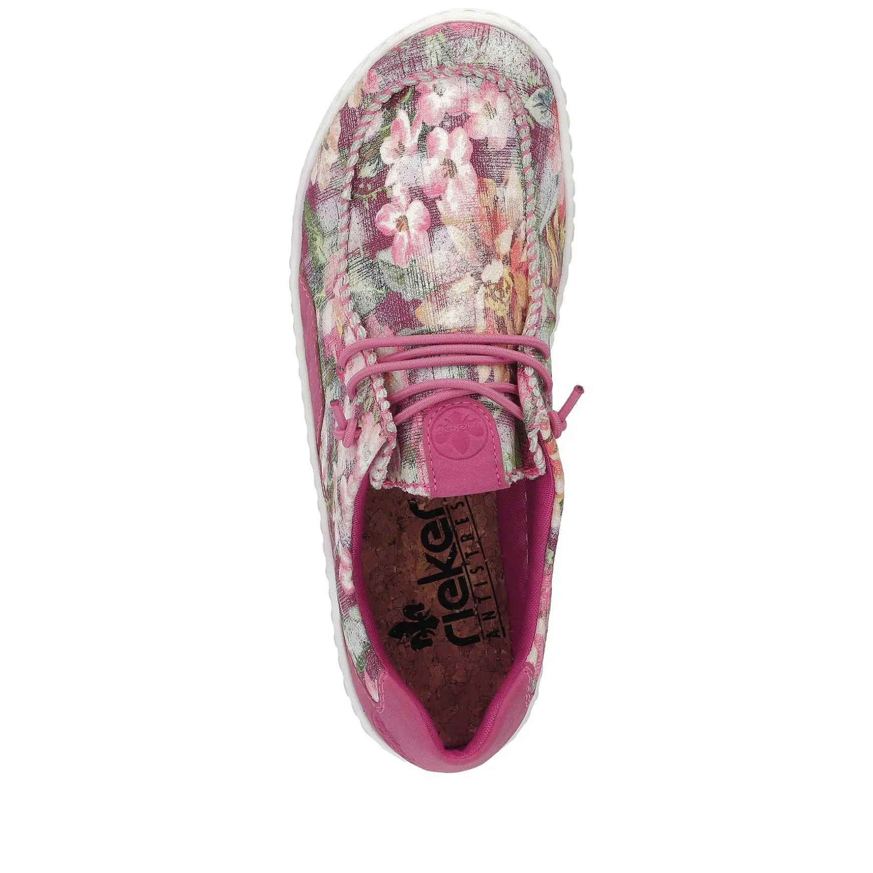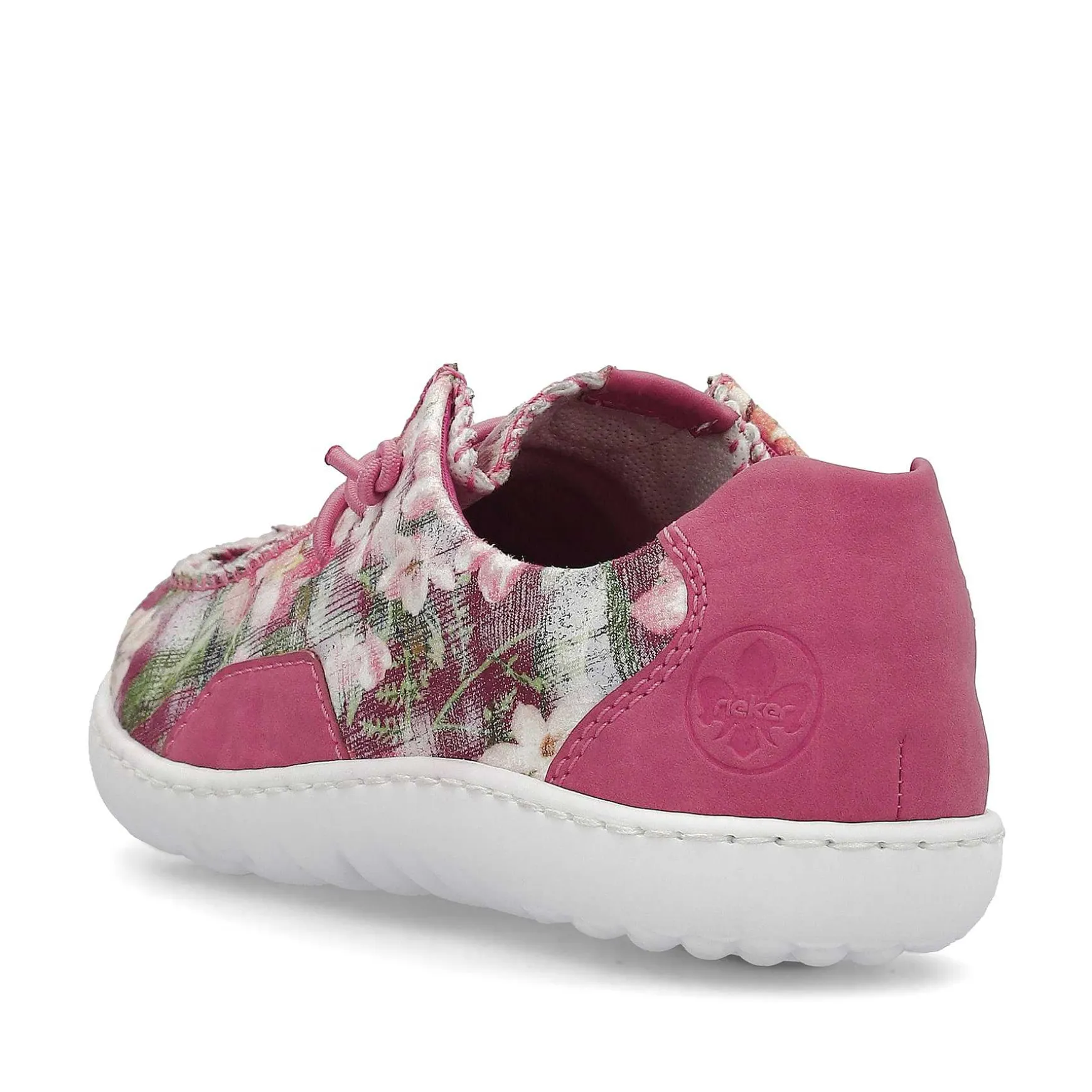 All-Time Favorite! These Vegan, Magenta-Colored Rieker Slippers For Women Feel Like Barefoot! Thanks To The Rubber Lacing, The Hassle Of Tying Shoes Is No Longer An Issue And Making Them Particularly Easy To Put On And Take Off. The Floral Pattern Adds A Fresh Accent. With The Shock-Absorbing And Very Light Sole, Your Feet Will Be Pampered With Every Step. Waiting For What?