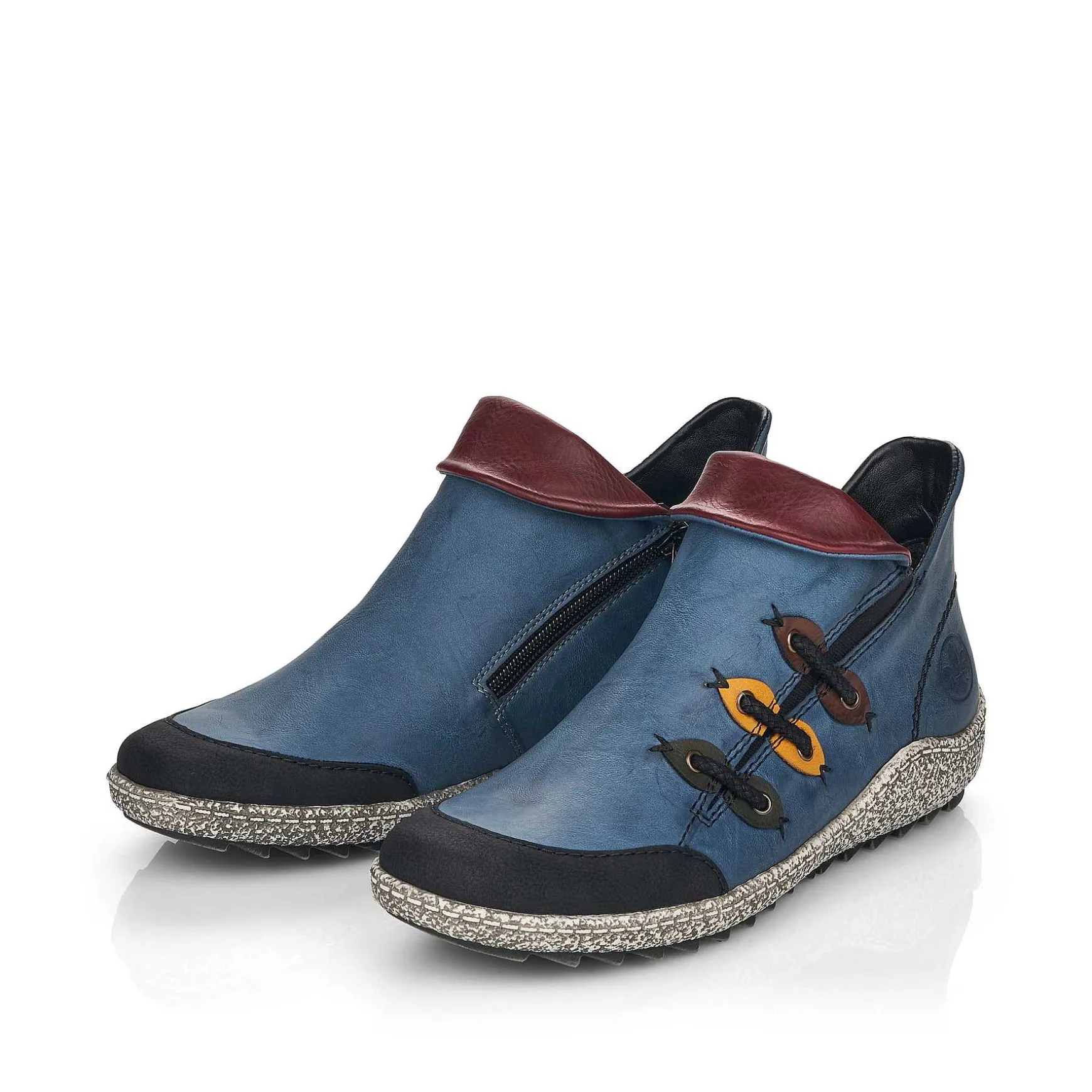 All-Rounder! These Ocean Blue Rieker Slippers For Women Are Perfect For Every Day. The Side Zipper Makes It Easy To Put On And Take Off. The Stylish Multicolored Eyelets On The Side Are Real Eye-Catchers. The Robust Profile Sole Provides Support On Different Paths. The Slippers Also Score Points With A Removable Insole. In Addition, The Slim E 1/2 Fit Provides Additional Support. What More Do You Want?