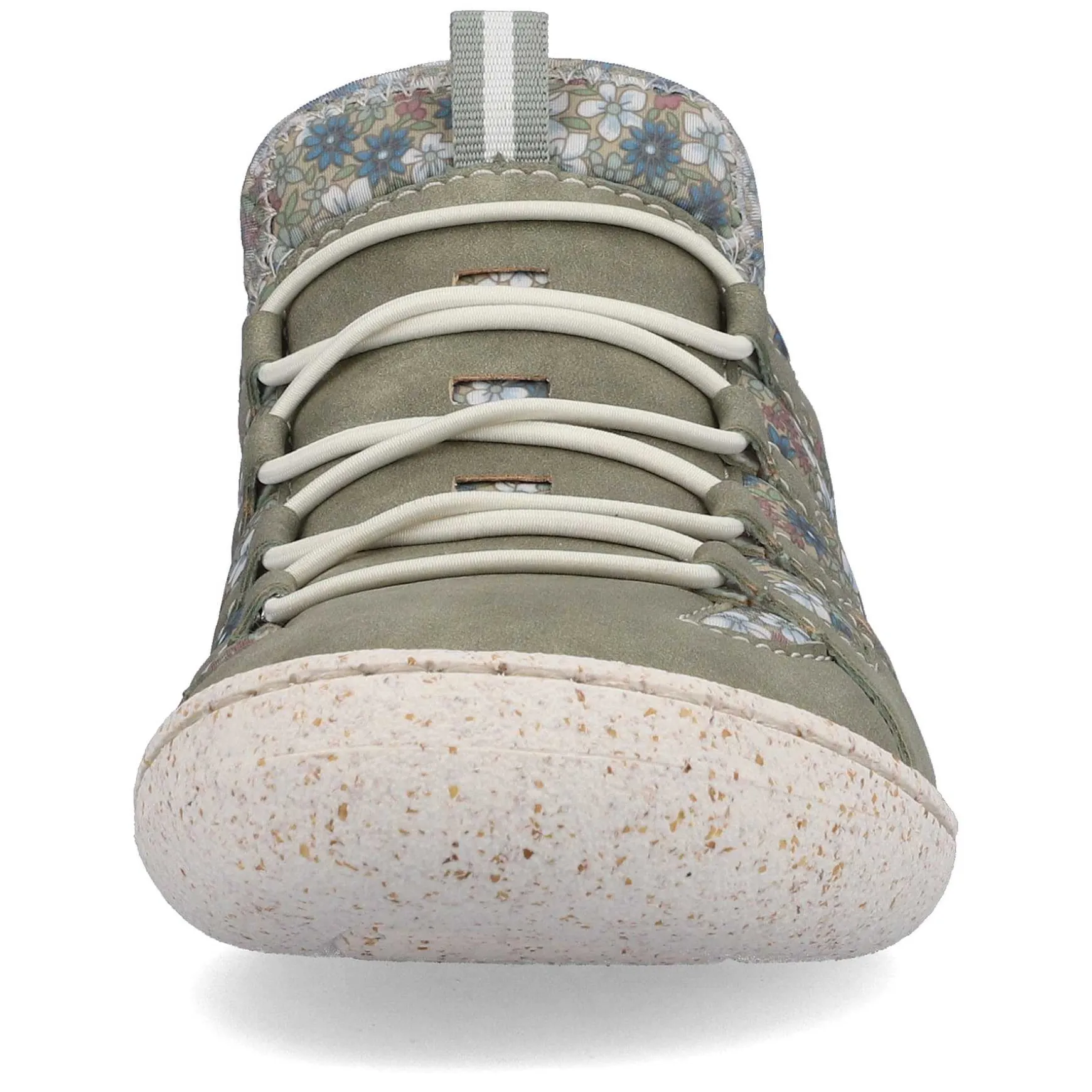 On The Fashion Radar! These Olive Green Rieker Slippers For Women Are Perfect For Every Day. Without A Fastener, The Model Can Also Be Put On Quickly. The Floral Pattern Is A Beautiful Eye-Catcher. Its Non-Slip Sole Ensures Good Grip And The Extra Soft Insole Is Another Plus. Simply Slip On And Enjoy – With Rieker!