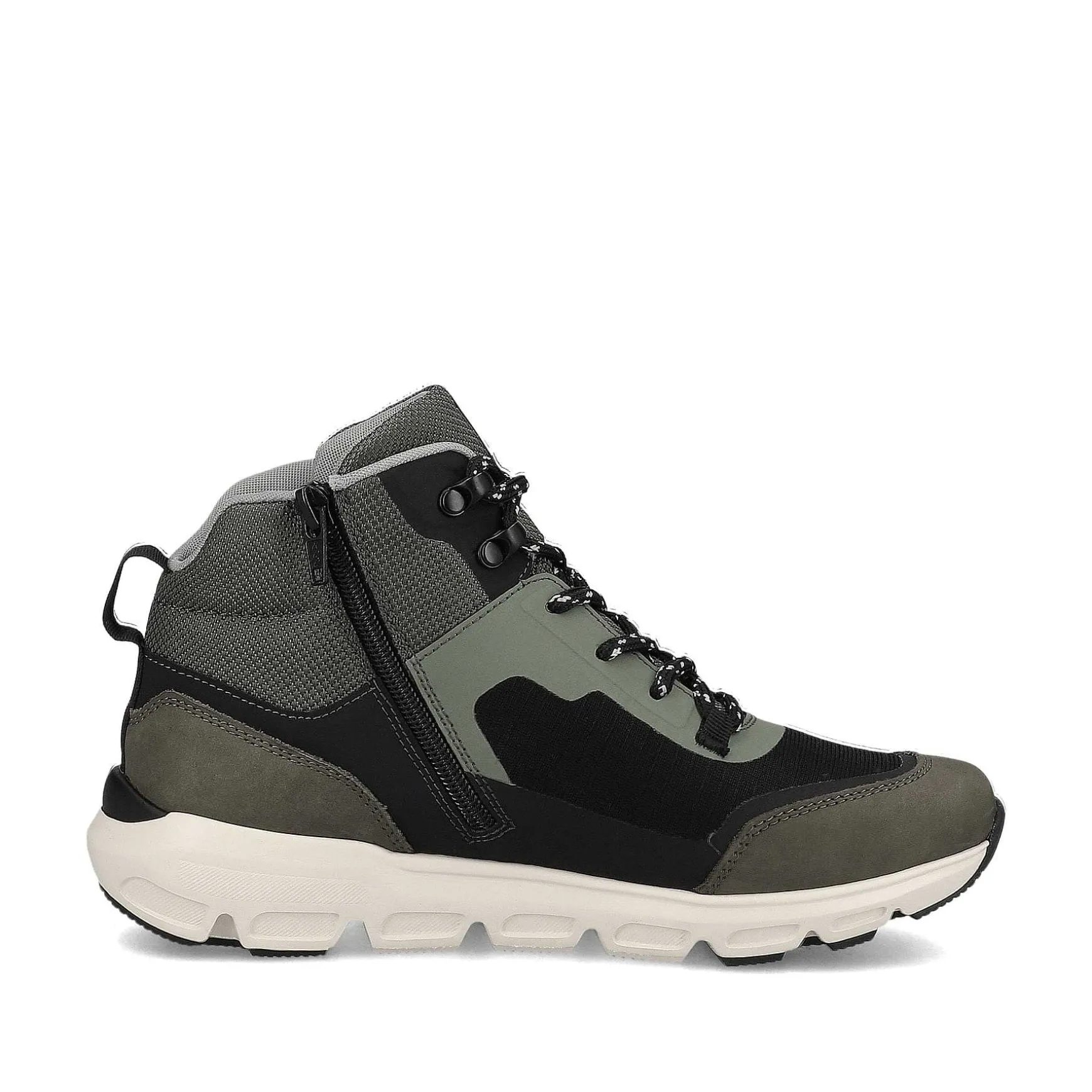 These Green Sport & Style Rieker High Sneakers For Women Have An Insole With A Cold-Blocking Three-Layer Construction For Optimal Thermal Effect. The Riekertex Membrane And The High-Tech Nano Coating Make The Shoe Additionally Water-Repellent, Dirt-Repellent And Breathable. The Eva/Rubber Sole Is Super Light And Flexible, While The Removable Insole Is Softly Padded. The Sneaker Features The Top Combination Of Zipper And Lacing.
