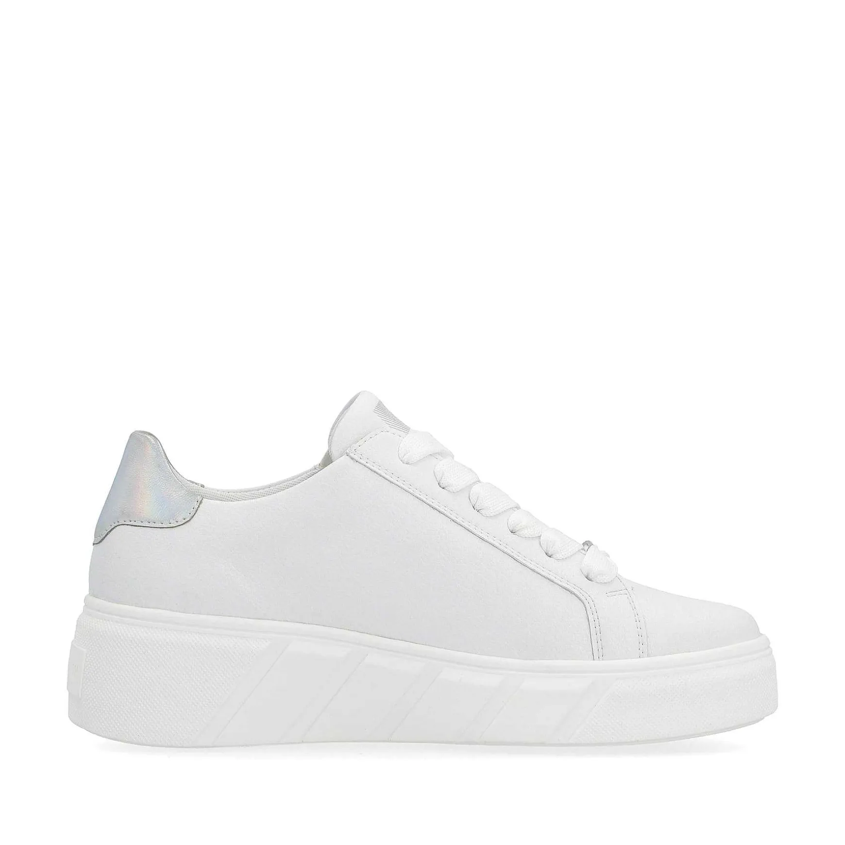 These White Sport & Style Rieker Sneakers Low For Women Made Of High-Quality Smooth Leather Are Closed Easily And Quickly With A Zipper. The Light Pu Sole In White Is Ultralight And, Together With The Removable, Soft Insole, Ensures Optimal Cushioning.