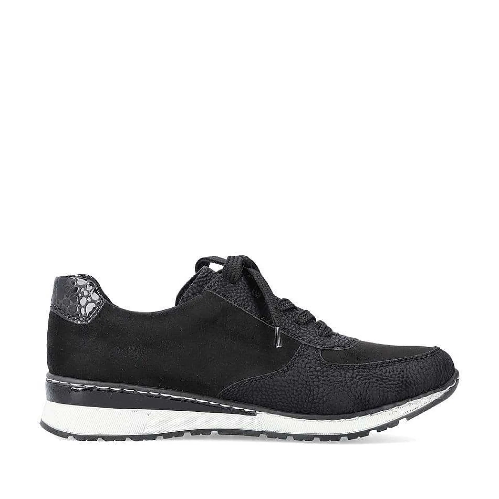 This Is The Pinnacle Of Comfort! These Deep Black Rieker Sneakers Low For Women Are The Perfect Companion For Every Occasion. The Clever Combination Of Lacing And Zipper Guarantees A Perfect Fit And The Best Possible Hold. The Shock-Absorbing And Lightweight Sole With Wedge Heel Ensures A Comfortable Fit. Thanks To The Padded And Removable Insole, The Best Comfort And Sophisticated Functionality Are Guaranteed. Feeling Good For Your Feet – With Rieker!