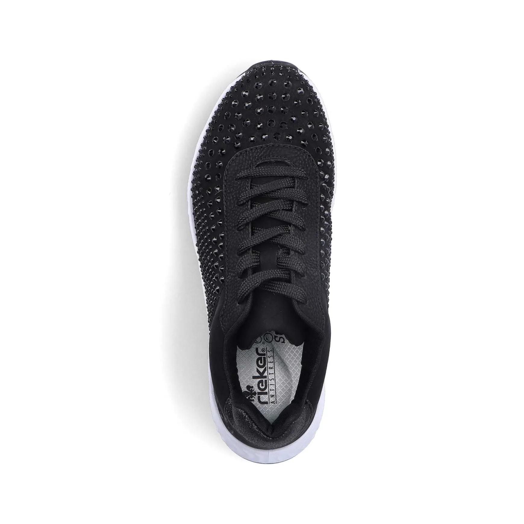 These Casual Sport & Style Rieker Sneakers For Women In Black Are Made Of High-Quality Faux Leather. The Comfort Width Guarantees A Perfect Fit. The Ultralight, Flexible Eva Outsole Ensures Speed And Agility. The Removable Insole Is Padded And Perfectly Cushions Every Step.