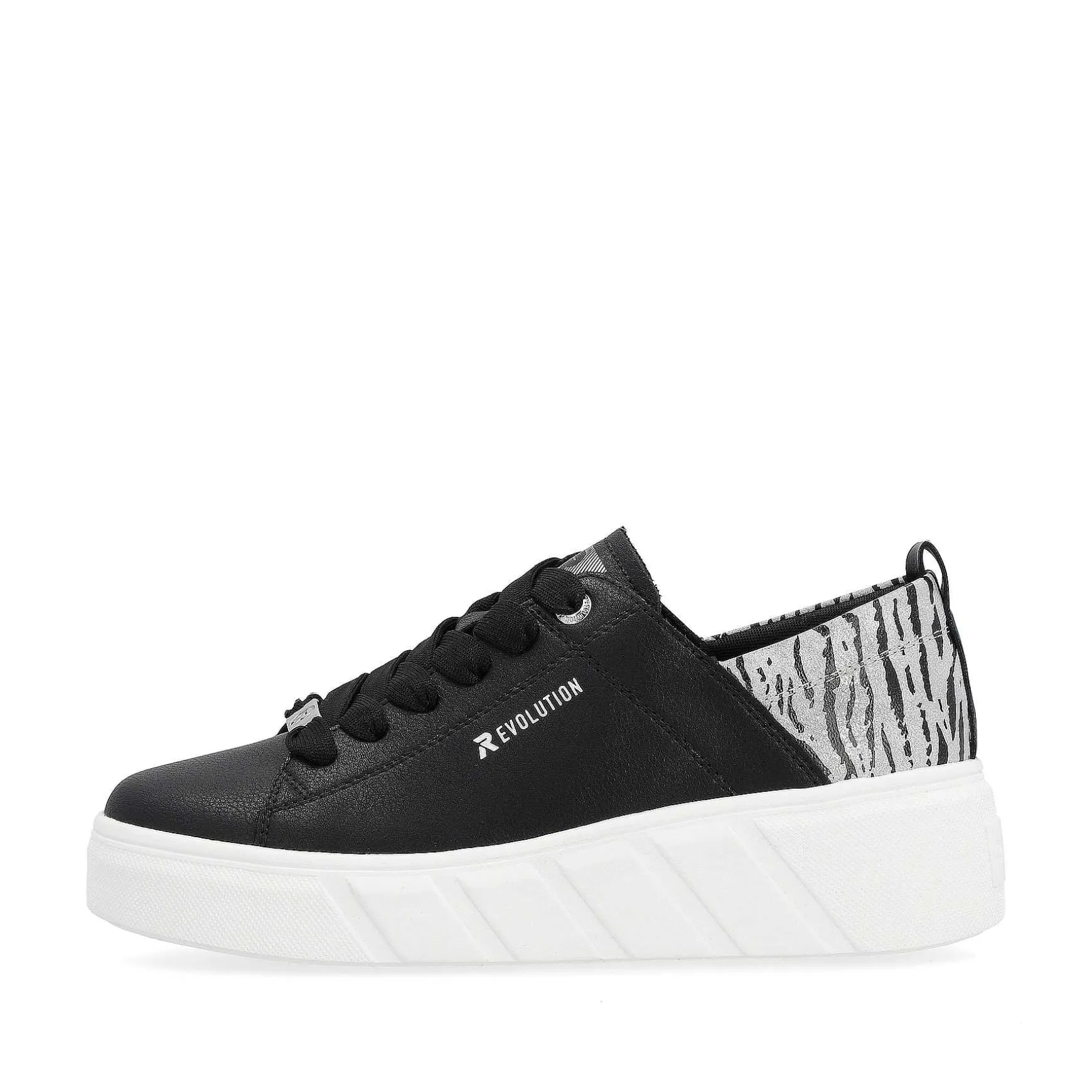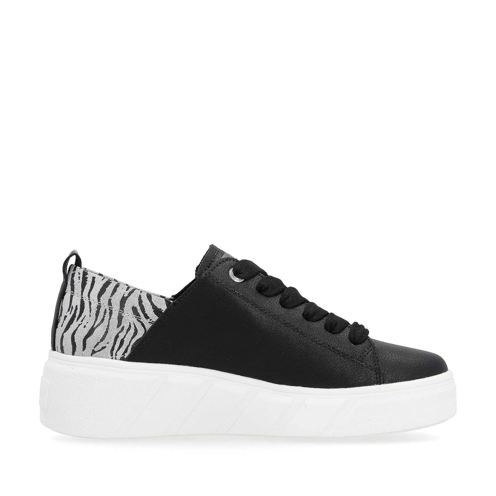 These Black Sport & Style Rieker Sneakers Low For Women Are Made Of High-Quality Smooth Leather. The Ultra-Light, Cushioning Light Pu Sole Ensures A Sporty Running Feeling. The Removable, Soft Insole Provides Perfect Cushioning For Every Step.