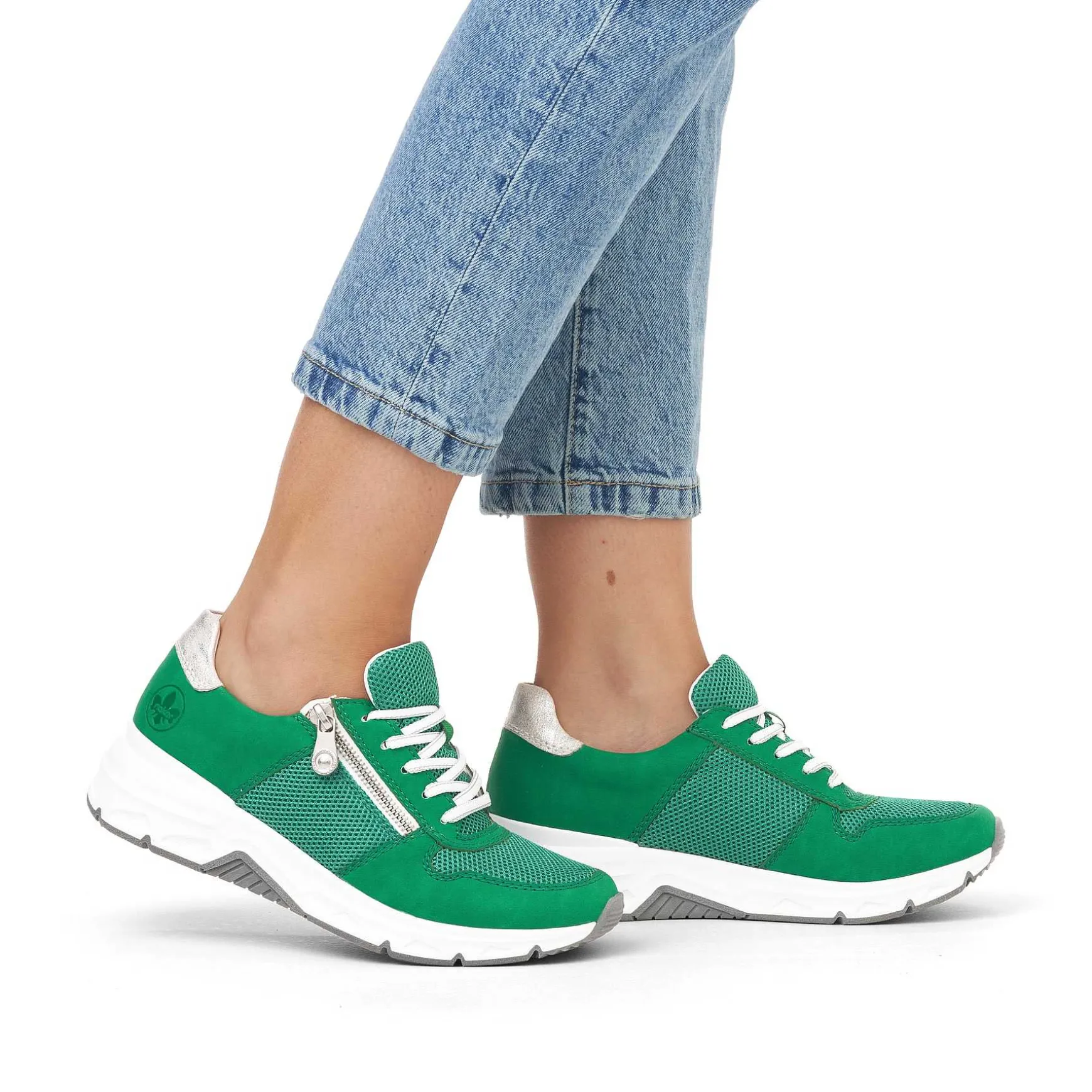 On The Fashion Radar! These Grass Green Rieker Sneakers Low For Women Have Been Elaborately Crafted. The Clever Combination Of Zipper And Lacing Makes It Easy To Put On And Take Off. With The Non-Slip Sole, Sure-Footed Walking Is A Given. The Sneakers Have A Padded And Removable Insole That Is Like A Vacation For Your Feet! The Comfort Width G Offers Enough Space So That The Feet Feel Comfortable Even When Worn For Longer Periods. Attention, Favorite Shoe Potential!